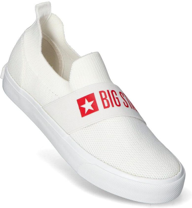 Modne trampki popularnej firmy Big Star:- cholewka wykonana z przewiewnej tkaniny - wnętrze pokryte zostało materiałem tekstylnym - miękka materiałowa wkładka gwarantuje komfort chodzenia - podeszwa o grubości 2 cm zapewnia odpowiednią stabilizację- elastyczna faktura materiału ułatwia zakładanie i dopasowanie obuwia - klasyczny biały kolor oraz modny fason tworzą idealne połączenie!