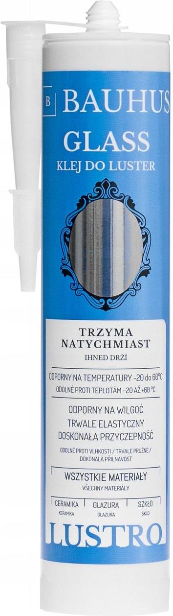 Bauhus Glass Klej Montażowy do luster, szkła, sztukaterii Klej montażowy do luster GLASS to jednoskładnikowy klej w postaci pasty na bazie kauczuków syntetycznych w rozpuszczalnikach organicznych. Klej jest przeznaczony do klejenia luster i nie tylko. Zalety elastyczna spoina wysoka siła wiązania odporny na wilgoć doskonała przyczepność odporny na temperatury od -20°C do + 60°C Zastosowanie klejenie luster do ścian i innych powierzchni klejenie elementów dekoracyjnych z drewna, gipsu, korka, płyty wiórowej, metalu, kamienia, styropianu klejenie glazury i szkła tworzenie sztukaterii z szkła i luster doskonały dla plastyków i artystów montaż luster na meblach Klejone powierzchnie pustak cegła drewno gips kamień korek płyty GK płyta wiórowa styropian Kolor beżowy - dzięki wykorzystaniu nowoczesnej formule jest dużo skuteczniejszy od zwykłych klejów na bazie silikonów. Skąd taka niska cena? Na tej aukcji kupujesz bezpośrednio od producenta, bez pośredników. 1. PRZYGOTOWANIE PODŁOŻA Klejone powierzchnie muszą być równe, suche, wolne od zanieczyszczeń i substancji utrudniających klejenie. 2. PRZYGOTOWANIE PRODUKTU Obciąć końcówkę kartusza i nakręcić odciętą pod odpowiednim kątem nakrętkę. Kartusz umieścić w pistolecie do kartuszy. 3. APLIKACJA Klej nanosić liniami na całą przyklejaną powierzchnię, zachowując dystans pomiędzy liniami ok. 5 cm i ok. 2 cm od krawędzi lustra. Po naniesieniu połączyć klejone elementy, silnie i równomiernie dociskając. Przed upływem 3-5 minut od momentu sklejenia, pozycję lustra można skorygować w zakresie 2-3 mm (bez ich odrywania). W przypadku większych luster (powyżej 0,15 m2) wykorzystywać elementy podtrzymujące, zapobiegające obsuwaniu lustra. Rekomendowane jest przeprowadzenie wstępnych testów adhezji przed rozpoczęciem klejenia. Odporność temperaturowa naszego kleju po utwardzeniu to od -20°C do 60°C