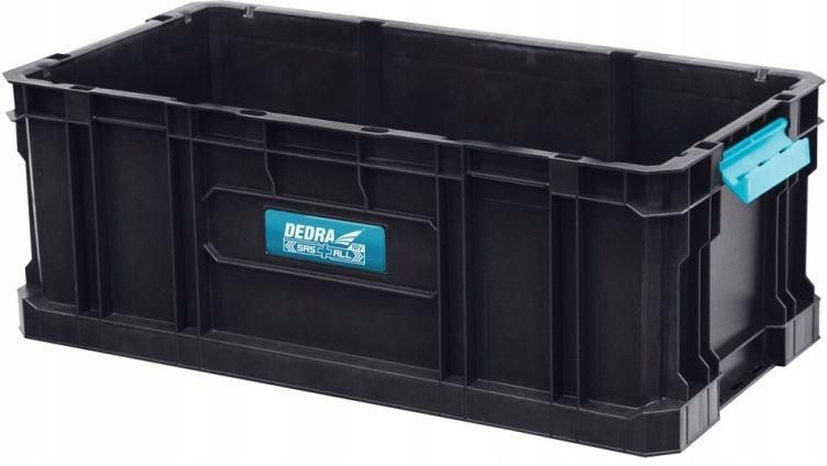 Dedra Skrzynka narzędziowa otwarta duża SAS N0308 System transportu DEDRA SAS+ to modułowy system skrzynek łączący w sobie funkcjonalność, ergonomiczność, niezawodność i nowoczesne rozwiązania. Wszystkie moduły są ze sobą w pełni kompatybilne, posiadają różne pojemności. Podstawą są dwa systemy transportowe: platforma N0302 lub skrzynia narzędziowa na kołach z teleskopowym uchwytem N0301. Łączenie elementów jest bardzo proste i intuicyjne. Elementy są wyprodukowane z wytrzymałego tworzywa wysokiej jakości. System skrzynek SAS+ pozwala na tworzenie optymalnych kombinacji zarówno dla profesjonalistów jak i majsterkowiczów. Modularny box o zwiększonej pojemności to doskonałe rozwiązanie do transportu elektronarzędzi, narzędzi ręcznych, materiałów budowlanych ale również do magazynowania zróżnicowanych przedmiotów np. w garażu lub na domowym zapleczu. Dane techniczne: Długość: 530mm Szerokość: 295mm Wysokość: 195mm Pojemność: 26L Wytrzymałe konektory Wzmocniona konstrukcja