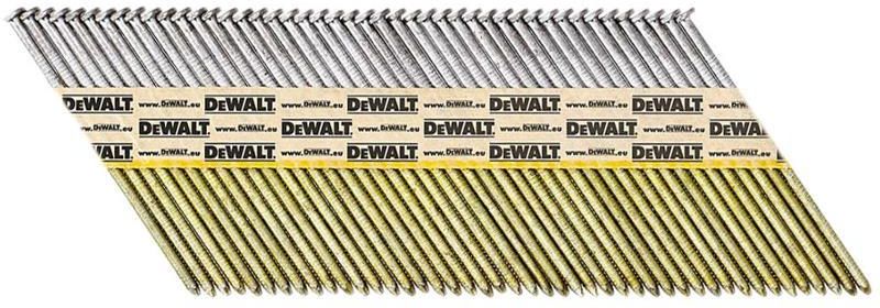 Gwoździe pierścieniowe do gwoździarek do drewna 34 stopnie 3,1 x 90mm DNPT31R90Z DeWALT Zawartość zestawu 2200 szt. gwoździ pierścieniowych DNPT31R90Z DeWalt Gwoździe z głowicą typu „D” połączone taśmą papierową.Pasuje do HiKOKI / Hikoki NR1890DBCL, NR90GC i NR90AD oraz do DeWalt DCN692 DCN695 …