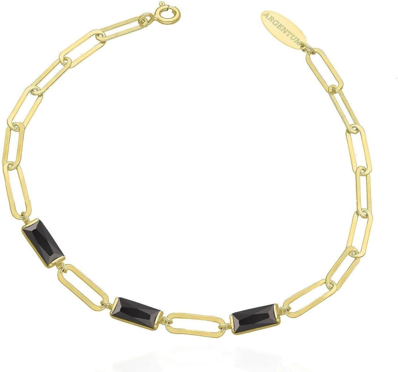 Srebrna bransoletka damska 925 pozłacana z czarnym kamieniem. Bransoletka wykonana z najwyższej jakości srebra. Idealny pomysł na prezent dla każdej kobiety. Bransoletka z czarnym prostokątnym kamieniem wykonana z próby 925 o oryginalnej formie będzie idealnym prezentem dla ukochanej kobiety. Srebrna bransoletka damska została pokryta złotem. Bransoletka srebrna z kamieniami posiada zapięcie na karabińczyk dając pełną swobodę podczas codziennego użytkowania. Srebrne Bransoletki dla kobiet to biżuteria lubiana przez wiele Pań, rozmaitość wzorów i różnorodność kamieni sprawia że każda z Pań znajdzie coś wyjątkowego dla siebie. Zmysłowa srebrna biżuteria może być ozdobiona różnym wzorem bądź grawerem dzięki czemu będzie idealnym pomysłem na prezent. Długość bransoletki : 18 cm Waga Bransoletki: 2,70 gram
