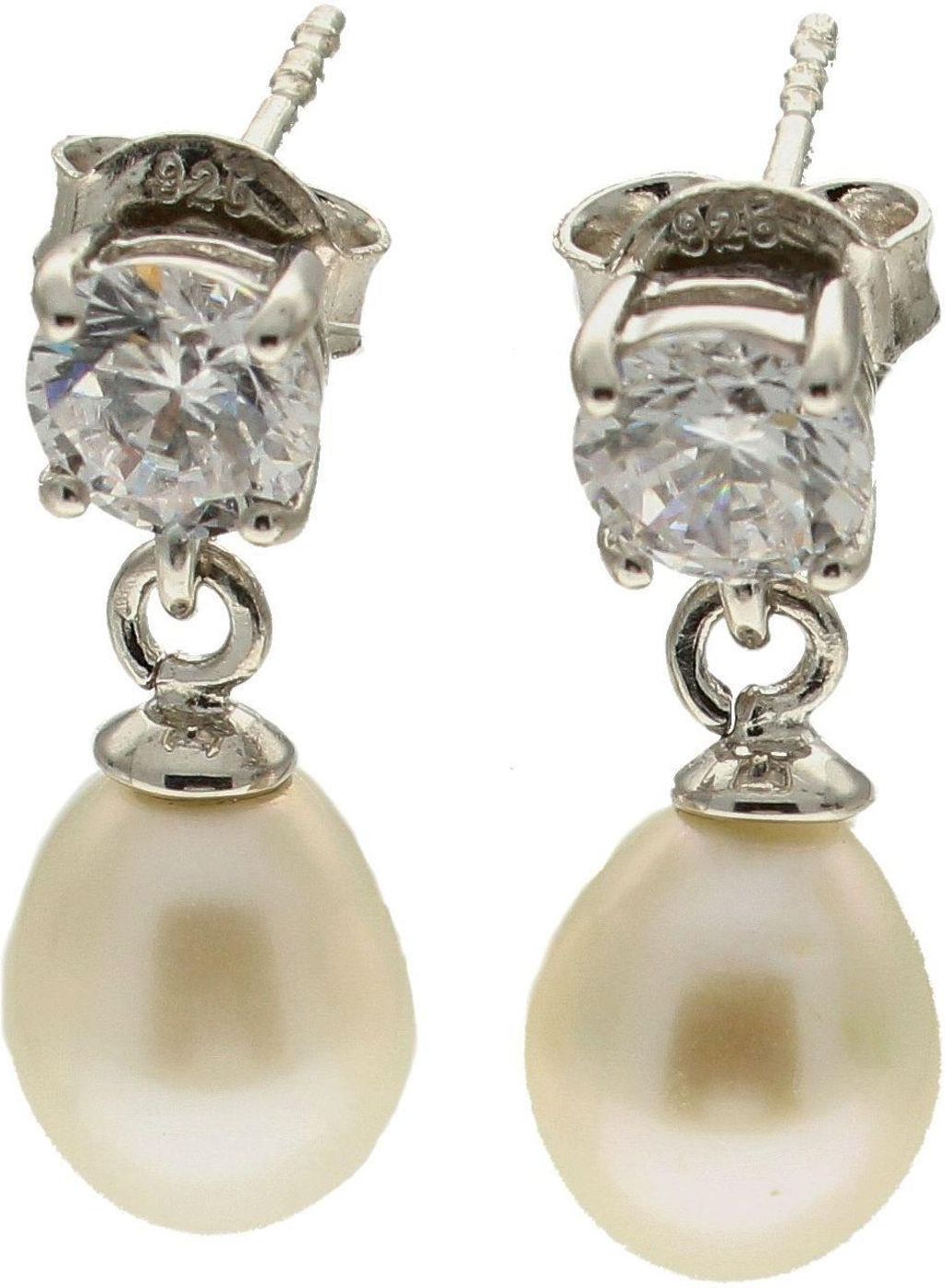 Diament Srebrne kolczyki damskie 925 wiszące z perłą i cyrkonią Ciechocinek