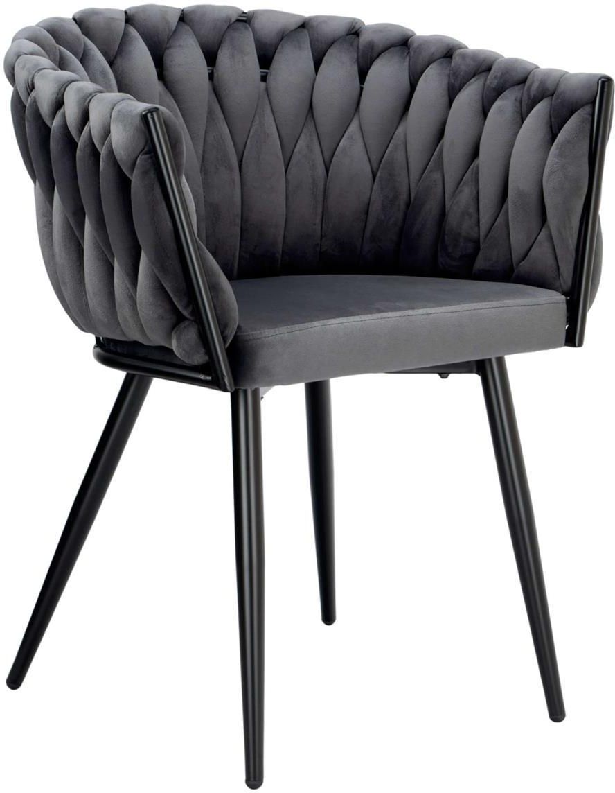 KRZESŁO TAPICEROWANE WELUROWE VELVET PLECIONE GLAMOUR CZARNE NOGI GRAFITOWE Miękkie, welurowe siedzisko Oparcie z przeplatanych warkoczy Metalowe, czarne nogi Maksymalne obciążenie 120 kg Krzesło Cofton Black Grafitowe Velvet - Styl glamour w Twoim domu Grafitowy velvet Krzesło welurowe Cofton Gold …