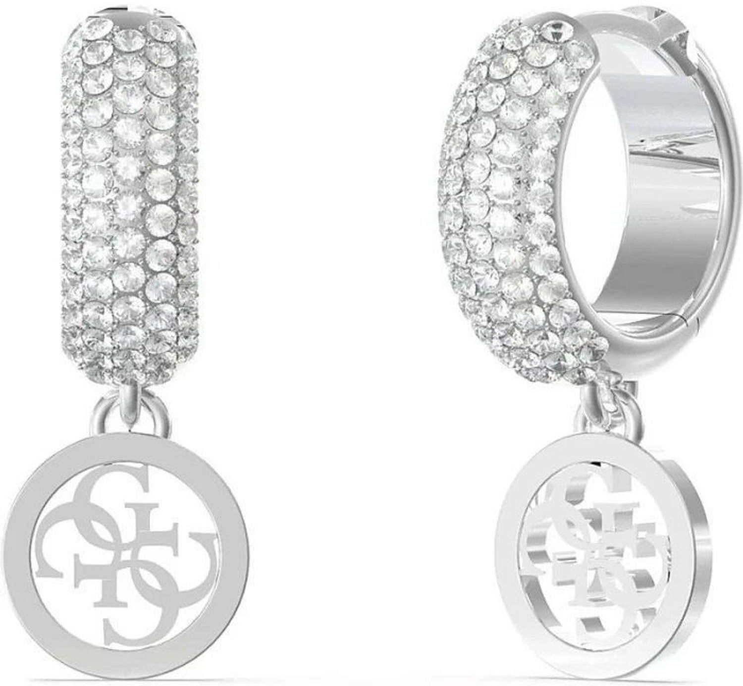 Kolczyki GUESS kółka z wiszącym logo Cyrkonie JUBE03301JWRHT-U. Kolczyki GUESS stalowe logo Guess kółeczka z cyrkoniami JUBE03301JWRHT-UKolczyki GUESS stalowe w kształcie kółeczek. Stalowe kolczyki wykonane z najwyższej jakości stali w kolorze srebrnym ozdobione cyrkoniami i logo Guess. Wielkość …