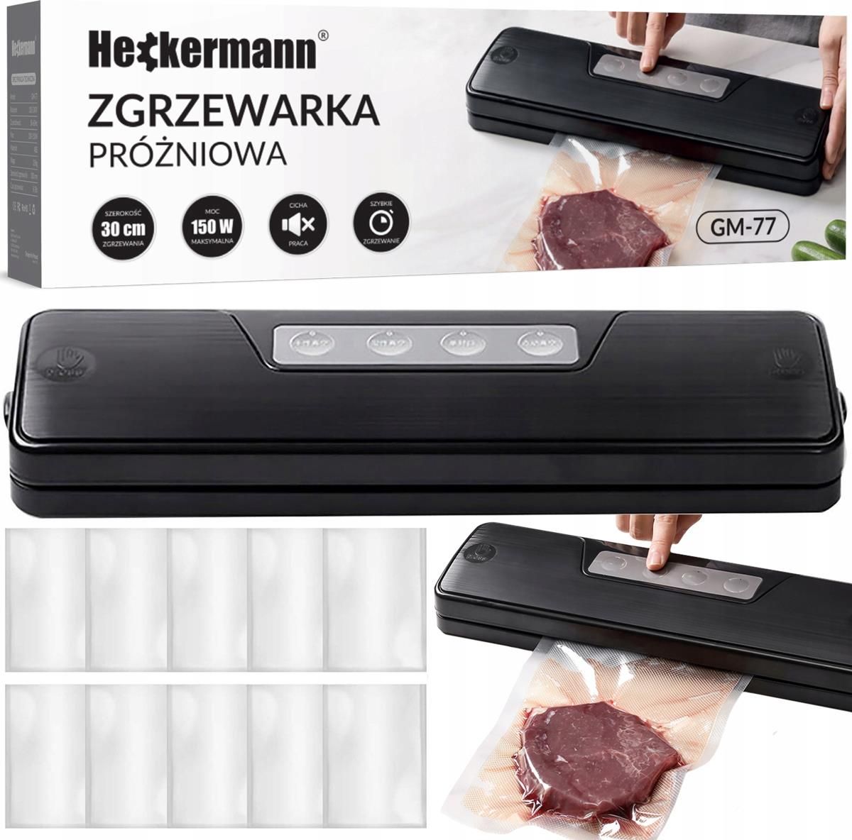 ZGRZEWARKA PRÓŻNIOWA DO PAKOWANIA ŻYWNOŚCI JEDZENIA PAKOWARKA 150W + FOLIA Zgrzewarka Próżniowa Heckermann + 10x Woreczków 24,5x16,5 cm + GRATIS Folia 28x600 cm Zgrzewarka próżniowa Heckermann to innowacyjne urządzenie kuchenne, które wykorzystuje system konserwacji aktywowany ciepłem do zabezpieczania świeżości mięs, warzyw oraz innych produktów spożywczych. Zachowuje smak, zapach i ogólną jakość żywności. Specyfikacja produktu Marka: Heckermann Moc: 150w Maksymalna szerokość folii: 30cm Kolor: Czarny Materiał: ABS Waga produktu: 800 g Zawartość zestawu: 1x Zgrzewarka Heckermann GM-77 Czarna 10x Woreczków 24,5x16,5 cm 1x Folia 28x600 cm Automatyczny proces zgrzewania To urządzenie z łatwością zgrzewa torebki zakupowe i woreczki jednym naciśnięciem przycisku. Możesz przechowywać resztki jedzenia, przygotowywać posiłki lub planować świeże dania dla całej rodziny. Zgrzewarka umożliwia również tworzenie własnych rozmiarów torebek. Przyjazny design Nasza automatyczna zgrzewarka próżniowa jest na tyle mała, że bez problemu zmieści się na blacie kuchennym, zajmując minimalną przestrzeń. Szybko i łatwo zgrzewa żywność, umożliwia przechowywanie mięsa lub tworzenie torebek. Długotrwała świeżość i jakość Zgrzewanie żywności z użyciem naszej zgrzewarki próżniowej pomaga w przechowywaniu w zamrażarce Zapewnia hermetyczne zamykanie, spowalnia proces oksydacji i gwarantuje lepszy smak oraz zachowanie naturalnych składników odżywczych. Wysokiej jakości torebki zgrzewane - Moletowane Nasze produkty współpracują również z innymi powszechnymi workami próżniowymi. Moletowana folia zapewnia lepsze zgrzewanie i dłuższą trwałość próżni. SKU: Z-00001722