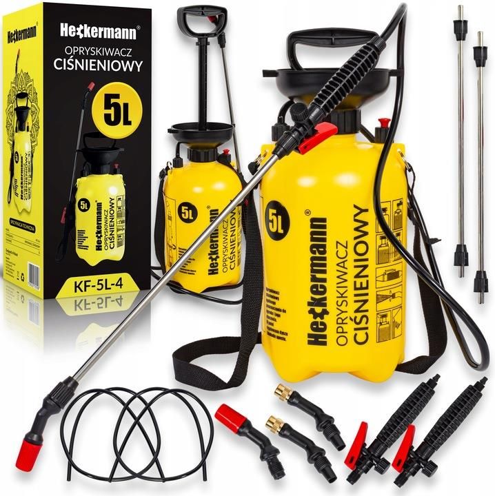 RĘCZNY OPRYSKIWACZ CIŚNIENIOWY SPRYSKIWACZ DUŻA POJEMNOŚĆ 5L REGULACJA DYSZ Opryskiwacz ciśnieniowy 5L marki Heckermann to solidne i wszechstronne narzędzie, idealne do różnych zadań ogrodniczych. Dzięki pojemności 5 litrów, jest w stanie sprostać nawet najbardziej wymagającym pracom w ogrodzie, na działce czy w sadzie. Jego funkcjonalność, ergonomiczny design i łatwość obsługi czynią go nieocenionym pomocnikiem każdego ogrodnika. Specyfikacja Produktu Pojemność: 5 litrów Materiał: Wysokiej jakości tworzywo sztuczne odporne na działanie chemikaliów Kolor: Żółty z czarnymi i czerwonymi elementami Waga: Lekki i łatwy do przenoszenia Pompka: Ręczna, umożliwiająca szybkie wytworzenie odpowiedniego ciśnienia Dysza: Regulowana, z możliwością ustawienia różnych rodzajów strumienia Marka: Heckermann Zestaw zawiera 1x Butla o pojemności 5L z pompką 2x Rurki dyszowe 2x Przewody 2x Pistolet do dyszy z regulacją 3x Końcówki 1x Pasek na ramię Zestaw uszczelek Duża Pojemność Pojemność 5 litrów pozwala na długotrwałe użytkowanie bez konieczności częstego uzupełniania płynów. Ergonomiczny Design Wygodna rękojeść i pasek na ramię zapewniają komfort podczas pracy. Pompka jest łatwa w obsłudze, a jej ergonomiczny kształt zapobiega zmęczeniu dłoni. Regulowana Dysza Dysza pozwala na precyzyjne dostosowanie strumienia oprysku – od delikatnej mgiełki po mocny strumień. Dzięki temu można dostosować oprysk do potrzeb różnych roślin i zadań. Wysoka Jakość Materiałów Wykonany z trwałego i odpornego na chemikalia tworzywa sztucznego, opryskiwacz jest odporny na uszkodzenia mechaniczne i korozję. Bezpieczeństwo Zawór bezpieczeństwa zabezpiecza przed nadmiernym ciśnieniem, co zwiększa bezpieczeństwo użytkowania. Instrukcja Obsługi na Produktcie Na bocznej ścianie opryskiwacza znajdują się piktogramy instruktażowe, które pokazują jak prawidłowo korzystać z urządzenia. Zalety Użytkowania Wszechstronność: Idealny do stosowania w ogrodach, na tarasach, w szklarni czy w sadzie. Może być używany do oprysków roślin, aplikacji nawozów, środków owadobójczych i herbicydów. Łatwość Obsługi: Intuicyjna obsługa i łatwość napełniania sprawiają, że nawet początkujący użytkownicy poradzą sobie z jego obsługą bez problemów. Mobilność: Dzięki paskowi na ramię i lekkiej konstrukcji, opryskiwacz można łatwo przenosić z miejsca na miejsce. Zastosowanie Ochrona Roślin: Skutecznie aplikuje środki ochrony roślin, chroniąc je przed szkodnikami i chorobami. Nawożenie: Umożliwia równomierne rozprowadzanie nawozów płynnych, wspomagając wzrost i zdrowie roślin. Czyszczenie: Może być również używany do aplikacji środków czyszczących na różne powierzchnie. Opryskiwacz ciśnieniowy Heckermann to niezastąpione narzędzie w każdym ogrodzie, które dzięki swojej funkcjonalności i łatwości obsługi z pewnością sprosta oczekiwaniom nawet najbardziej wymagających użytkowników. SKU: 0001136