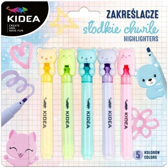 Kidea Zakreślacze Słodkie Chwile 5 Kolorów Zwierzątka Ciechocinek