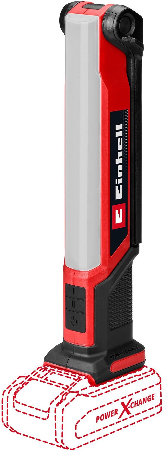 EINHELL LAMPA WARSZTATOWA TE-CL 18/1000 S Li-Solo 4514180 SOLO (WERSJA BEZ AKUMULATORA I ŁADOWARKI) EINHELL TE-CL 18/1000 S Li-Solo Należy do rodziny Power X-Change, wymagany akumulator 1x 18 V Warunki oświetleniowe porównywalne ze światłem dziennym 15 mocnych diod LED Idealna do oświetlania krótkich odległości Duża elastyczność dzięki składanej głowicy Lampa składająca się z dwóch pasków świetlnych Haki do zawieszania i oczka do elastycznego mocowania i przechowywania Smukła, lekka konstrukcja Ergonomiczny uchwyt z miękką rękojeścią Softgrip Dostawa bez akumulatora i ładowarki (dostępne osobno) Ciemne warsztaty, garaże lub place budowy to już przeszłość: Zasilana akumulatorem Power X-Change lampa TE-CL 18/1000 S Li-Solo firmy Einhell zapewnia światło w ciemności. Wydajny akumulator litowo-jonowy z innowacyjnej rodziny Power X-Change zapewnia optymalny poziom oświetlenia. Głowica lampy jest składana i umożliwia trzy ustawienia światła, co zapewnia dużą elastyczność użytkowania: dwa panele świecą razem lub indywidualnie. Strumień świetlny wynoszący 1000 lumenów i 15 diod LED o wysokiej intensywności umożliwiają oświetlenie na krótkim dystansie do 5 metrów. Jaśniejsze warunki oświetleniowe zapewnia neutralna biała barwa światła 5700 K. Smukła i lekka konstrukcja bezprzewodowej lampy Einhell oraz uchwyt z miękką powierzchnią zapewniają elastyczne użytkowanie oraz łatwe i oszczędzające miejsce przechowywanie. Dzięki licznym opcjom mocowania, takim jak oczka i hak mocujący, nie ma ograniczeń co do możliwych zastosowań. Lampa akumulatorowa TE-CL 18/1000 S Li-Solo jest dostarczana bez akumulatora i ładowarki. Są one dostępne osobno. System akumulatorowy Power X-Change To ponad 300 urządzeń pracujących na jednym typie akumulatora. Posiadając akumulator można dokupić pozostałe urządzenia w wersji SOLO – bez akumulatora i ładowarki. Dodatkowo istnieje możliwość dokupienia akumulatorów o różnej pojemności (od 2 Ah do 6Ah) i różnych typów ładowarek.