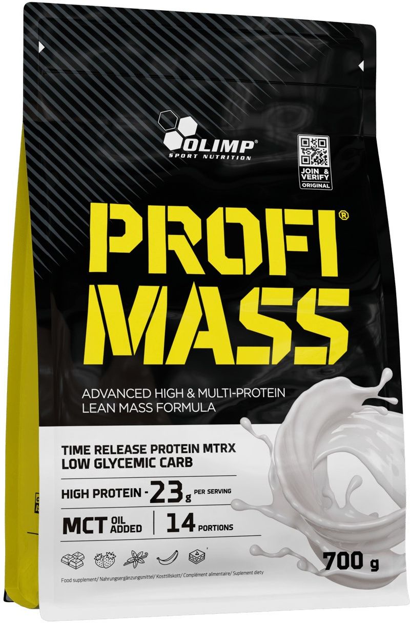 OLIMP SPORT NUTRITION PROFI MASS Gramatura: 700g Smak: Waniliowy Budowanie masywnej, wyrzeźbionej sylwetki zostało na nowo zdefiniowane ... daj się porwać czystej masie mięśniowej! Profesjonalna odżywka potęgująca przyrosty beztłuszczowej masy mięśniowej. Jej bazę stanowi kompleks zaawansowanych, złożonych węglowodanów, oparty o długołańcuchowe maltodekstryny i wielkocząsteczkową woskową skrobię kukurydzianą - Waxy Maize, cechujące się niskimi indeksami glikemicznymi. Baza węglowodanowa została dodatkowo uzupełniona zaawansowaną formułą białkową zawierającą matrix wysoko przyswajalnego koncentratu, izolatu i hydrolizatu białek serwatki połączonego z wolno wchłanianą, ekskluzywną kazeiną micelarną. Proporcja pełnowartościowych protein i złożonych węglowodanów zapewniająca optymalny rozrost beztłuszczowej masy ciała wzbogacona została izomaltulozą, olejem MCT, L-glutaminą, tauryną i kompleksem potrzebnych witamin. Skład Profi Mass przewiduje wzajemny synergizm jego poszczególnych składników, celem osiągnięcia maksymalnego efektu anabolicznego przy minimalnym poziomie otłuszczenia organizmu. Profi Mass zapewni Ci maksymalne przyrosty beztłuszczowej masy mięśniowej! Oto niezbite argumenty… PROFI MASS® zawiera w sobie bardzo zaawansowany suplementacyjnie matrix proteinowy łączący w sobie wszystkie frakcje białek mleka (hydrolizat, koncentrat i izolat białek serwatkowych, a także nieskazitelnej jakości micelarną kazeinę) o wartość BV sięgającej 159. Proporcje zastosowanych źródeł białka zostały dobrane w oparciu o precyzyjnie ustalone kinetyki szybkości trawienia i uwalniania aminokwasów do krwiobiegu, a także efektywności ich absorbcji do komórek i integracji ze strukturami własnymi organizmu. Ten niezwykle skuteczny blend proteinowy zapewnia wysokie nasycenie krwi białkowymi produktami trawienia już w 15 minut od chwili jego podania (hydrolizat białek serwatkowych), osiągając maksimum stężenia w czasie 45min- 2 godz. (koncentrat białek serwatkowych, izolat białek serwatkowych) i na ciągle wysokim poziomie utrzymując go przez 6 kolejnych godzin (kazeina micelarna). Skrupulatnie dobrane ilości i rodzaje źródeł białka gwarantują bardzo pożądany, dla budowy mięśni, profil aminokwasowy, szczególnie bogaty w aminokwasy niezbędne i rozgałęzione. Stosowanie Profi Mass gwarantuje, zatem, utrzymanie wysokiej podaży aminokwasów, zarówno w trakcie intensywnego wysiłku, jak i zaraz po nim, bezpośrednio przyczyniając się do nadkompensacji składników budulcowych. W tak sprzyjających warunkach fizjologicznych potreningowa regeneracja będzie zachodziła z wysoką wydajnością. Izolat białek serwatki i micelarna kazeina dodatkowo ujawnią swój wysoki potencjał w intensyfikacji procesów lipolizy, zmieniając pokrój sylwetki sportowca, czyniąc ją bardziej odtłuszczoną. Esencja skuteczności Profi Mass’a®, oprócz starannie wyselekcjonowanych frakcji białkowych, wynika również z innowacyjnej formuły Low-GLC™ bazującej nawęglowodanach tylko o niskim indeksie glikemicznym (poli- i oligosacharydy, długołańcuchowa, woskowa skrobia kukurydziana Waxy Maize, izomaltuloza). Koncepcja działania zastosowanego kompleksu węglowodanów opiera się na założeniu utrzymania umiarkowanego i stabilnego pod względem anabolicznym, poziomu insulinywe krwi. Wyklucza to wahania poziomu cukrów w osoczu i gwarantuje nieprzerwaną absorbcję składników energetycznych do komórek mięśniowych. Umiarkowany poziom monosacharydów we krwi, osiągany po spożyciu Profi Mass, chroni również sportowca przed zmniejszaniem wrażliwości receptora insulinowego na ten hormon, co może mieć miejsce w przypadku podaży dużej ilości glukozy. Węglowodany wchodzące w skład Profi Mass® stanowią nieprzerwane źródło energii, natychmiast po jego spożyciu (fruktoza) i utrzymują stabilna podaż węglowodanów już po 30 minutach (maltodekstryny), aż do prawie 4 godzin (długołańcuchowa, woskowa skrobia kukurydziana Waxy Maize i izomaltuloza). Zapewnia to bezpośrednią dostępność składników energetycznych już od pierwszej chwili po zakończeniu treningu. Dodatek oleju MCT nasila dodatkowo procesy regeneracyjne, tak, aby kolejno następujący wzrost i adaptacja obciążanej treningowo tkanki mięśniowej mogła się odbywać bez żadnych przeszkód. Efektywność przemian metabolicznych warunkują witaminy! Kompleks aż 12 witamin zastosowany w Profi Mass stoi na straży efektywności pracy wszystkich enzymów biorących udział w przemianach metabolicznych zaprzęgniętych wregenerację i wzrost tkanki mięśniowej. Witaminy i minerały muszą być bezwzględnie uzupełniane, gdyż ich straty w trakcie intensywnych sesji wysiłkowych są ogromne, a to znacznie upośledza jakość wszystkich przemian biochemicznych zachodzących w ciele sportowca. Nie można na to pozwolić! Dostarczanie wyselekcjonowanych w Profi Masswitamin gwarantuje intensyfikację efektu wynikającego z obecności w krwiobiegu wysokiego stężenia aminokwasów i węglowodanów, pochodzących z trawienia składników obu innowacyjnych formuł - węglowodanowej i proteinowej. Dodatkowy, wysoki potencjał antyoksydacyjny części witamin, wpływa na utrzymanie niskiego poziomu wolnych rodników, w dużych ilościach powstających w komórce mięśniowej w trakcie intensywnego wysiłku. Dla kogo dedykowany jest Profi Mass? Profi Mass stanowi zaplecze składników budulcowych i energetycznych o perfekcyjnie dobranej kinetyce uwalniania i, jak żaden inny preparat „masowy” na rynku, z powodzeniem może być stosowany tuż przed snem, bez groźby otłuszczenia organizmu. Jest, zatem, idealnym wyborem dla kulturystów i pasjonatów sportów siłowych, szczególnie w okresie pracy nad definicją umięśnienia. Profi Mass stanowi nieocenioną pomoc suplementacyjną dla osób mających problemy z budowaniem wys