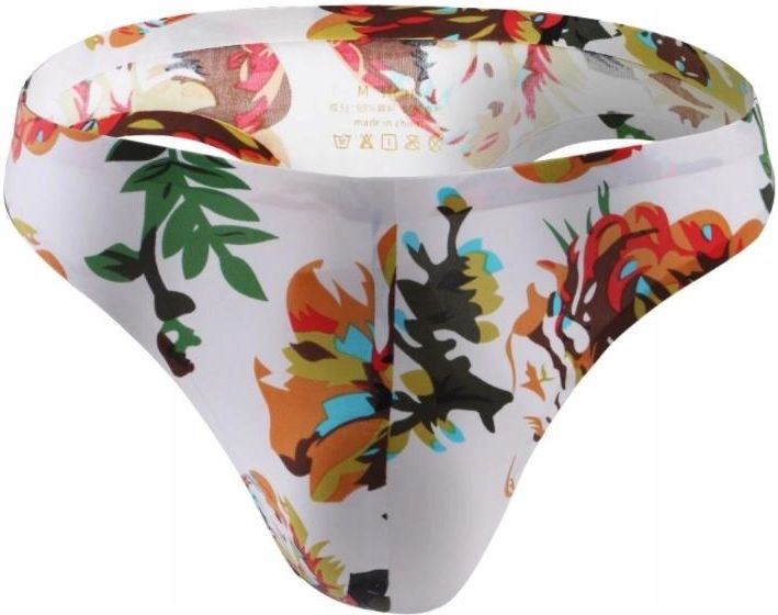 Stringi Męskie Białe w Liście -XL- Ciechocinek