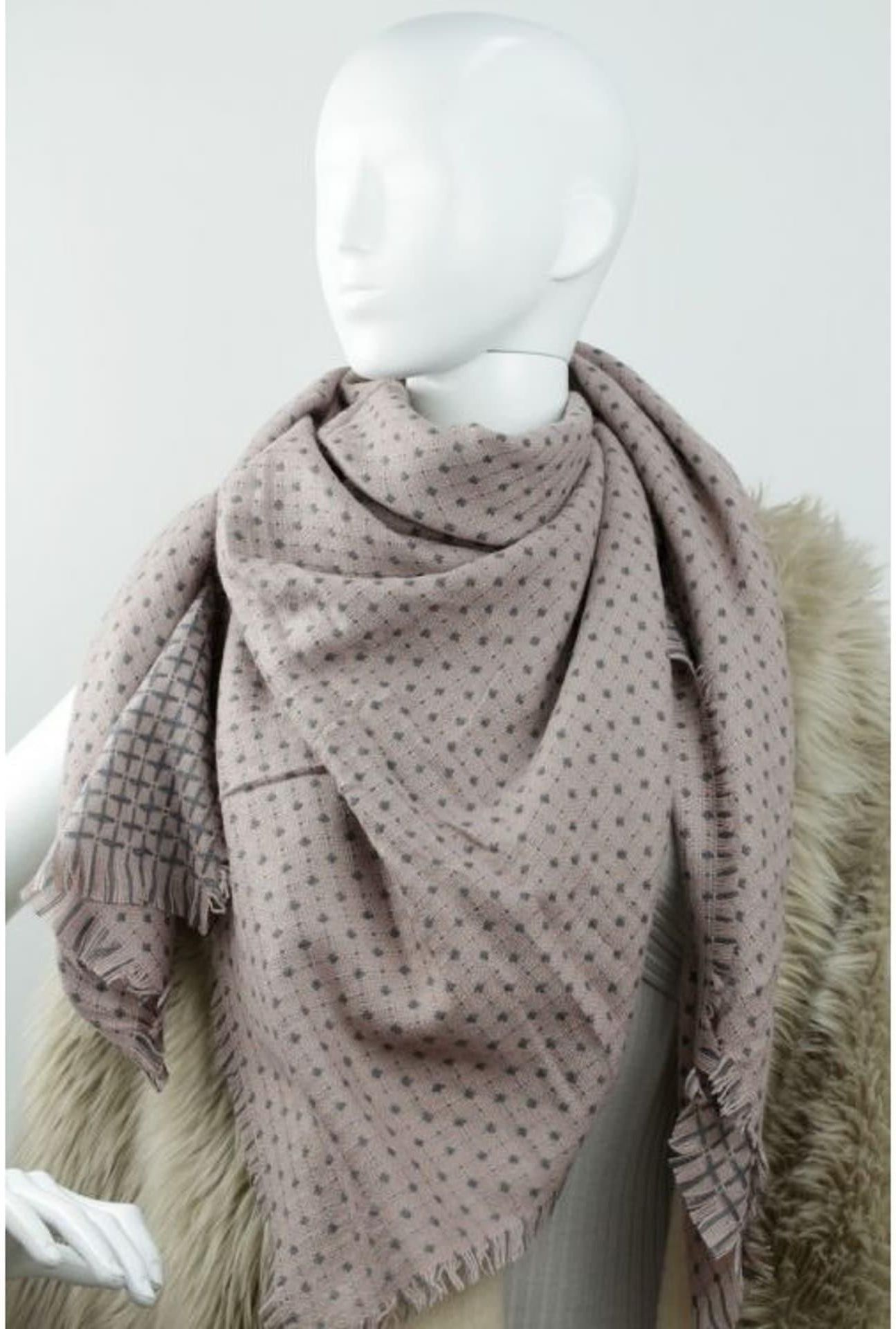 Elegancki szal / chusta Kolory: brudny róż 140 cm x 140 cm Materiał: 80 % wiskoza 20 % bawełna Idealny do jesiennych kurtek oraz zimowych płaszczy.