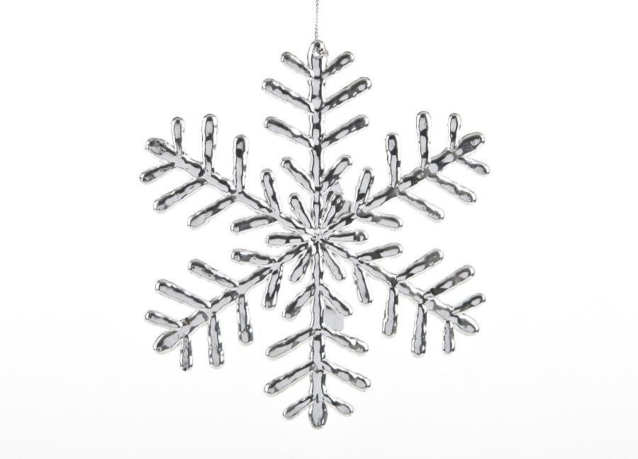 Ozdoba świąteczna śnieżynka srebrna Srebrna śnieżynka to elegancka ozdoba, która doskonale podkreśli zimowy charakter świątecznych dekoracji. Jej starannie odwzorowany, symetryczny kształt tworzy efektowną, przestrzenną formę, a metaliczna powierzchnia pięknie odbija światło, dodając aranżacjom subtelnego blasku. To idealny dodatek do choinki, stroików oraz kompozycji świątecznych utrzymanych w chłodnej, srebrzystej palecie barw. Wniesie do wnętrza wyrafinowaną elegancję i nowoczesny akcent. • wykonana z lekkiego, trwałego tworzywa • precyzyjnie odwzorowany kształt śnieżynki • połyskująca, metaliczna powierzchnia • idealna do dekoracji choinki i zimowych aranżacji Zdjęcie aranżacyjne ma charakter poglądowy. Prezentowana aranżacja może zawierać elementy dekoracyjne niewchodzące w skład zestawu. Szczegóły dotyczące zawartości znajdują się w opisie produktu.