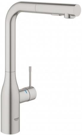 GROHE ACCENT bateria zlewozmywakowa z wyciągana wylewką stal nierdzewna 30432DC0 wysoka wylewka montaż jednootworowy GROHE Long-Life trwała powłoka GROHE SilkMove głowica ceramiczna 28 mm GROHE EasyDock łatwe chowanie wyciąganej wylewki regulator przepływu wyciągana wylewka z przełącznikiem strumienia standard/ prysznic SpeedClean metalowa główka natrysku obrotowa wylewka kąt obrotu 360° zintegrowany zawór zwrotny zabezpieczenie przed przepływem zwrotnym giętkie węże przyłączeniowe system szybkiego montażu zintegrowany ogranicznik temperatury min. rekomendowane ciśnienie 1,0 bar