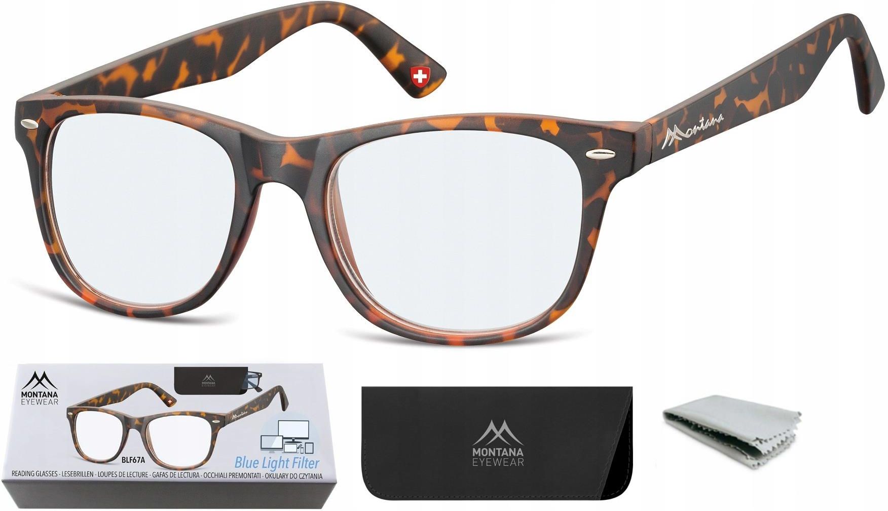 Oprawki Plusy Korekcyjne do Komputera, Czytania z Antyrefleksem BLFBOX67A Dostępne moce: 0, +1, +1.5, +2, +2.5, +3, +3.5 soczewki asferyczne filtr światła niebieskiego (powłoka antyrefleks) panterka / szylkret, matowe pokrowiec w zestawie oraz markowe pudełko i ściereczka Okulary Montana, to …