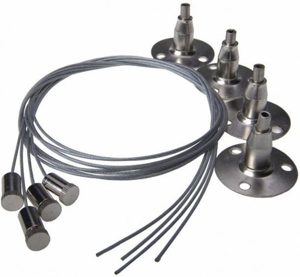 Zestaw 4 stalowych linek do podwieszania panelu LED. Sposób montażu Przykręć uchwyt do sufitu, stropu czy innego miejsca, do którego przymocowana ma być lampa, przełóż linkę przez przeznaczony do tego otwór i zabezpiecz ją zakrętką! Drugi koniec linki przymocuj do lampy i gotowe! Długość linek możesz bez problemu wyregulować, dzięki czemu oświetlenie będzie wisiało w idealnym poziomie nawet, kiedy przymocowane będzie do nierównej powierzchni!