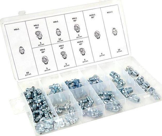 Smarowniczki kalamitki 62szt Smarowniczka, urządzenie o zwartej budowie dozujące smar w danym urządzeniu technicznym (głównie w łożyskach ślizgowych). Niezbędne do prawidłowego funkcjonowania wszelkich mechanizmów których praca oparta jest o długotrwałe eksploatowanie łożysk - wymagających dodatkowej ilości smaru do prawidłowego działania.