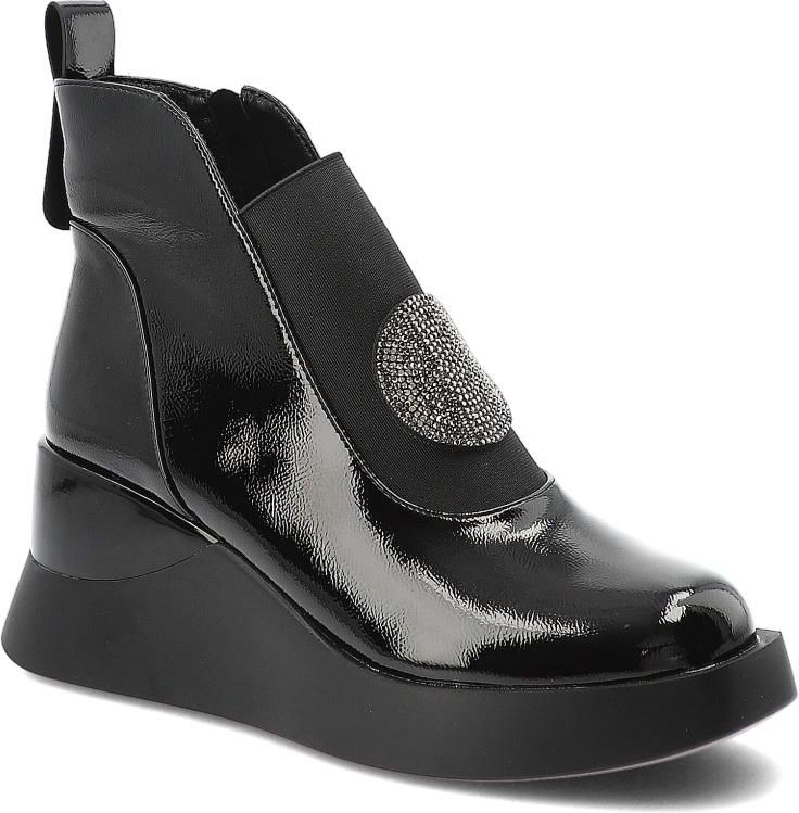 Czarne Botki S.Barski Wygodne Lakierowane Buty Damskie Cieszyn