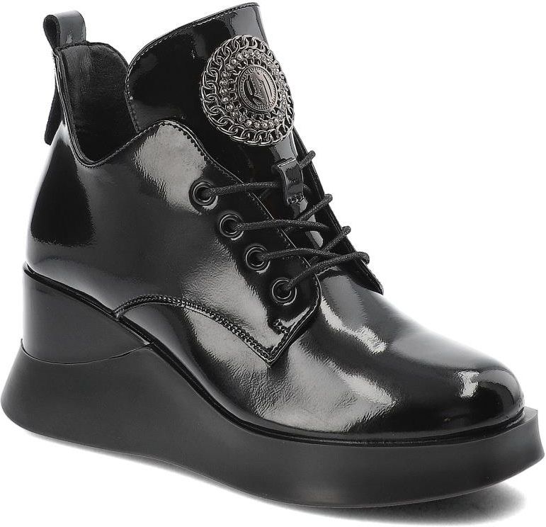 Czarne Botki Vinceza Stylowe Lakierowane Obuwie Damskie