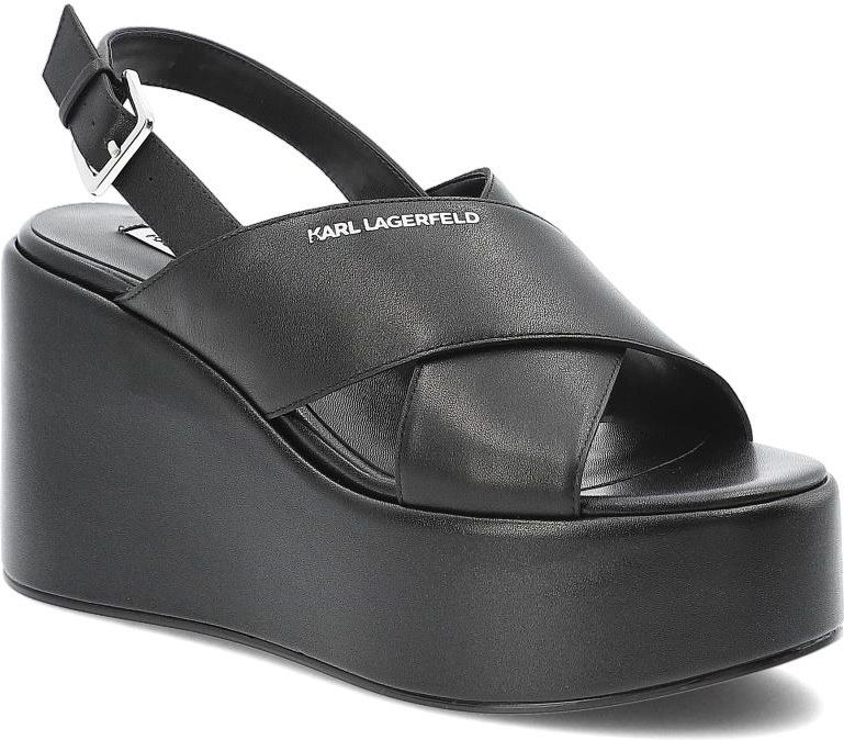Czarne Sandały Karl Lagerfeld Eleganckie Obuwie Damskie Na Koturnie
