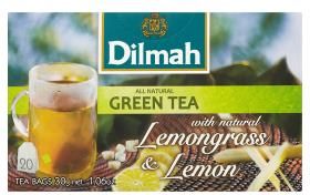 Dilmah Green Tea with natural Lemongrass & Lemon Zielona herbata z trawą cytrynową i naturalnym aromatem cytryny. 20 torebek ekspresowych 1,5g z zawieszką. Plaster cytryny jako dodatek do herbaty czarnej jest mocno zakorzeniony w naszej kulturze. Dostaniemy go wraz z filiżanką gorącego naparu …