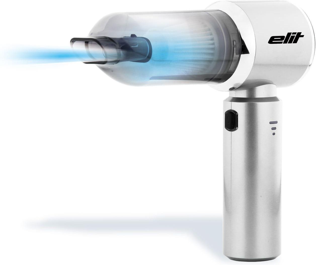 Odkurzacz ręczny Elit zoomGO 4w1 omniClean – ZoomGo – bezprzewodowy ręczny odkurzacz BLDC Przedstawiamy nasz ręczny, wielofunkcyjny odkurzacz, pompkę... w zasadzie urządzenie do przedmuchiwania... krótko mówiąc, wszystkie powyższe funkcje w jednym produkcie. Dmucha, nadmuchuje, odkurza i odpompowuje. ZoomGo to wielofunkcyjne, przenośne urządzenie o kompaktowej konstrukcji, które łączy funkcje odkurzania i dmuchania powietrzem. Dzięki niewielkiej wadze i praktycznej konstrukcji idealnie nadaje się do użytku w domu, w podróży lub w samochodzie. Silnik BLDC, 100 AW Do 30 minut pracy Siła ssania do 15000 Pa Filtr HEPA Bateria 2000 mAh Tylko Zoooooooom.... Mocny, bezprzewodowy odkurzacz ręczny z filtrem HEPA, idealny do szybkiego sprzątania. Odkurza Dokładnie czyści fotele samochodowe, sofę, okruchy ze stołu lub pajęczyny. Lekki i mały, co ułatwia dostęp do ciasnych przestrzeni. Nadmuchuje Wykorzystaj potężną funkcję nadmuchiwania, aby w mgnieniu oka nadmuchać materace, piłki lub zabawki. Dmuchanie Zmień kierunek z ssania na dmuchanie i zdmuchnij okruchy z klawiatury lub obiektywu aparatu. Odpompowanie Dzięki silnemu strumieniowi powietrza możesz użyć ZoomGo do szybkiego opróżnienia z powietrza materacy dmuchanych, piłek lub zabawek. Jedno urządzenie do wszystkiego! Technologia BLDC zapewnia silną i stabilną moc ssania. Bateria o pojemności 2000 mAh wystarcza na nawet 30 minut wydajnego ssania. Filtry HEPA zapewniają wychwytywanie nawet najmniejszych cząstek kurzu. 8 akcesoriów ułatwiających precyzyjne użycie oraz poręczne etui, w którym można przechowywać wszystkie nasadki i odkurzacz.