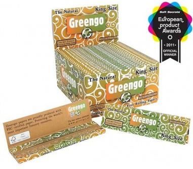 Bibułki GREENGO King Size Slim Niebielone CAŁA PACZKA BOX Opakowania zbiorcze bibułek GREENGO King Size Slim. Zawiera 50 paczek bibułek. Bibułki GREENGO King Size Slim wykonane są w technologii TCF- są całkowicie pozbawione chloru. Cechują się delikatnie brązowym kolorem. Bibułki posiadają znak wodny znajdujący się na całej długości bletki. Zapewnia to równomierne, powolne spalanie. Rozmiar bibułki: 110/44 mm Gramatura: 14 g/m2. 1 opakowanie zawiera: 33 bibułki. CAŁA PACZKA - BOX zawiera 50 paczek bibułek.