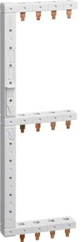 Szyna łączeniowa pion. 4P/3-rzędowa KCF668L HAGER Dane techniczne Nr katalogowy: KCF668L Liczb biegunów: 4 Prąd znamionowy In: 63A Napięcie znamionowe: 110/415V Kolor: szary Długość produktu: 271 mm Przekrój przewodu sztywnego (drut) w zacisku: 10mm2 Opis Rozdzielnice wykonane są z wysokiej jakości tworzywa sztucznego. Przystosowane są do użytkowania wewnątrz pomieszczeń. Rozdzielnice posiadają obudowę zamkniętą skrzynkową. Posiadają również listwy zaciskowe N+PE. Elementem montażowym w rozdzielnicy jest wspornik TH 35/7,5 (Euroszyna), pozwalający na zamontowanie zabezpieczeń nadmiarowo - prądowych, wyłączników różnicowo - prądowych oraz innych aparatów elektrycznych. Zgodnie z obowiązującymi normami rozdzielnice należy umieszczać na trudnopalnych ścianach przez osoby odpowiednio wykwalifikowane