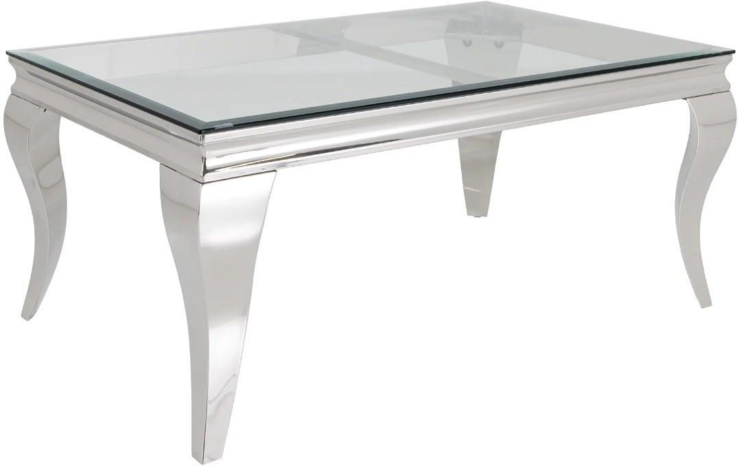 STOLIK KAWOWY MODERN BAROCK BARRACUDA 100X60 CM Stolik kawowy MODERN BAROCK BARRACUDA to idealne rozwiązanie do każdego salonu i wnętrza w stylu nowoczesnym, gdzie mebel ten dzięki swojej unikatowej formie przykuje uwagę każdego, a także nada wnętrzu charakteru i naturalnego wykończenia. W górnej części składa się z przezroczystego blatu wykonanego ze szkła hartowanego, którego bez wątpienia głównym atutem jest niesamowity blat znajdujący się pod szybą wykonany z częściowo postarzanego, litego drewna tekowego, pochodzącego z recyklingu. Dzięki zachowaniu oryginalnej struktury drewna w postaci szczelin, słojów i sęków prezentuje się zjawiskowo. Całość mebla została osadzona na stabilnej i solidnej metalowej konstrukcji wykonanej z polerowanej stali nierdzewnej w kolorze srebrnym. Mebel ten perfekcyjnie odzwierciedla styl nowoczesny oraz barokowy, a jego szlachetne wzornictwo sprawi, że twój salon uzyska trochę luksusu oraz niezwykłej i niepowtarzalnej charyzmy, charakteru oraz niezwykłej elegancji. W całej serii MODERN BAROCK BARRACUDA występują stoły, stoliki, konsole, fotele, komody, pufy, sofy, ławy o różnych podstawach, wymiarach i kolorach - patrz produkty powiązane. Produkt sprzedawany bez blatu tekowego - jest on dostępny w naszym sklepie (kod produktu - 44373) Produkt jest wykonany z surowców naturalnych, przez co może różnić się od prezentowanych zdjęć. Wszystkie przetarcia, szczeliny oraz nierówności są zamierzone. Każdy produkt jest przez to unikalny i oryginalny. Invicta Interior to niezawodny dostawca ekskluzywnych designerskich mebli i akcesoriów domowych. Jest to dynamiczna i doświadczona firma z wieloletnimi międzynarodowymi kontaktami i stale poszukującą nowych produktów i innowacyjnych pomysłów. Dojrzała ogólna koncepcja firmy pozwala zaoferować klientom duży wybór nowoczesnych i klasycznych mebli o wyjątkowej jakości w rozsądnych cenach. Invicta Interior monitoruje wszystkie aktualne trendy w branży meblowej, dlatego klienci zawsze otrzymują najnowsze i najwyższej jakości designerskie meble.