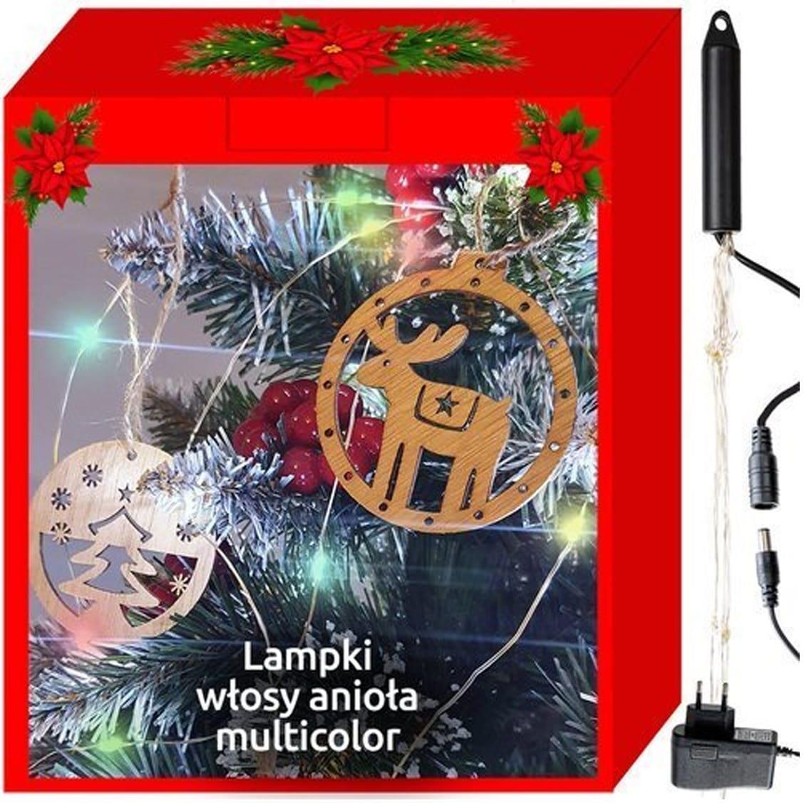 Lampki 200 LED - włosy anioła - multicolor 12V Iso Trade LAMPKI CHOINKOWE WŁOSY ANIOŁA 200 LED LEDOWE OŚWIETLENIE NA DRUCIKACH / WŁOSACH – to dekoracyjne oświetlenie ledowe tworzy wyjątkową i niepowtarzalną dekorację każdego mieszkania i domu. Lampki wykonane zostały z giętkiego druciku, który można dowolnie kształtować. ENERGOOSZCZĘDNE DIODY MIKRO LED - diody typu LED charakteryzują się niskim poborem energii, a także nowoczesnym wyglądem. Dzięki swojej energooszczędności świetnie sprawdzą się w kompozycjach, które długo pozostają włączone, np. w stroikach. 200 LAMPEK MIKRO LED NA 10 WŁOSACH - dzięki temu, że lampki są LED-owe pobierają znacznie mniej energii niż tradycyjne źródła światła, bo świecąc nie emitują ciepła. Cechuje je również długi czas pracy od 15 000 h do nawet 35 000 h. Ozdoba posiada, 200 diod LED na 10 włosach anioła, które rozjaśnią nawet najciemniejsze wnętrze i sprawią, że stanie się przytulne i klimatyczne. Teraz możesz spokojnie oświetlić choinkę, drzewo w ogrodzie, a nawet dom. DO DZIEŁA! MOŻLIWOŚĆ ZAWIESZENIA - teraz każda dekoracja nabierze charakteru i uroku. Dzięki zawieszce możesz powiesić ozdobę w dowolnym miejscu np. na choince, oknie, półce czy suficie. Ogranicza Cię tylko wyobraźnia. SPECYFIKACJA – rodzaj oświetlenia; mikro LED; barwa światła: multicolor; kolor okablowania: przeźroczysty; ilość diod: 200; zasilanie: sieciowe; moc: 9 W; długość sznura ledowego: 1,95m; waga: 0,11 kg; waga w opakowaniu: 0,115 kg SPECYFIKACJA rodzaj oświetlenia; mikro LED; barwa światła: multicolor; kolor okablowania: przeźroczysty; ilość diod: 200; zasilanie: sieciowe; moc: 9 W; długość sznura ledowego: 1,95 m; waga: 0,11 kg; waga w opakowaniu: 0,115 kg Lampki rewelacyjnie sprawdzą się nie tylko jako ozdoba na Święta np. choinkowa, to również świetny sposób na wykonanie stroika, dekorację mieszkania oraz klimatyczne tło do zdjęć. Wykaż się kreatywnością i wykorzystaj je przy tworzeniu ciekawych fotografii i selfie, które pokocha świat. Prezentują się wyjątkowo w każdym miejscu, w którym je umieścimy dodając niesamowitego klimatu i charakteru. Świetnie nadaje się również na prezent. Spraw najbliższym i sobie niezapomniane Święta.