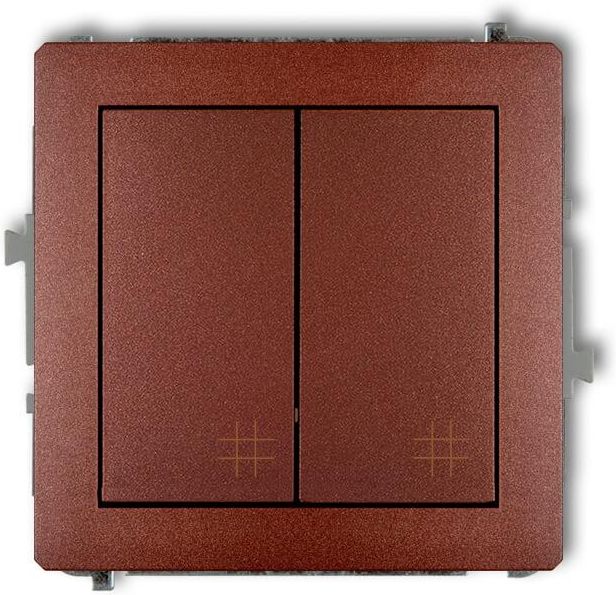 Łącznik krzyżowy Karlik Deco 9DWP-66 podwójny z piktogramem brązowy metalik Seria DECO składa się z różnych kategorii produktów od podstawowych łączników do skomplikowanej elektroniki. Mechanizmy spełniają ponad 80 różnych funkcji w zależności od potrzeb. Nowoczesne produkty w postaci łączników, gniazd pojedynczych, gniazd podwójnych, gniazd bryzgoszczelnych, gniazd abonenckich RTV i RTV-SAT, gniazd antenowych TV i SAT, gniazd telefoniczno-komputerowych, gniazd multimedialnych, regulatorów, sterowników, czujników i wielu innych podnoszą jakość Twojego życia. Bogata gama kolorystyczna 10 kolorów mechanizmów; 10 kolorów ramek uniwersalnych z tworzywa; 10 kolorów ramek wypełniających z tworzywa, niwelujących efekt odstawania osprzętu od ściany; 12 kolorów ramek uniwersalnych z tworzywa DECO Pastel matt; 10 kolorów ramek uniwersalnych z tworzywa DECO Soft, zapewniających idealne przyleganie produktu do ściany; 7 kolorów ramek uniwersalnych z efektem szkła; 3 rodzaje ramek uniwersalnych drewnianych; 1 rodzaj ramki uniwersalnej z efektem drewna; nieskończona ilość kolorów ramek uniwersalnych z efektem szkła DECO Art. Zalety techniczne mechanizmów gniazd i łączników serii DECO solidna konstrukcja (metalowa ramka montażowa) zapewnia odpowiedni montaż; zaciski śrubowe gwarantują pewne połączenie; niewypadające nakrętki przy zaciskach śrubowych; "jaskółcze ogonki" w kostce gniazda służą do pozycjonowania mechanizmów w poziomie przy układach wieloramkowych; solidne pazurki służące do pewnego mocowania osprzętu w puszce instalacyjnej; pazurki w pozycji neutralnej ułatwiają wprowadzenie mechanizmu do puszki. Schowane pazurki są chronione, aby uniknąć uszkodzenia izolacji przewodów i skaleczeń podczas instalacji; wszystkie gniazda serii DECO posiadają wbudowane przesłony torów prądowych, zabezpieczające dzieci przed dostępem do części niebezpiecznych instalacji elektrycznej. Gniazda serii DECO nie wymagają użycia żadnych dodatkowych, zewnętrznych zabezpieczeń; schemat podłączenia łącznika widoczny na kostce pozwala na prawidłowe podłączenie. Produkty serii DECO są perfekcyjnym dopełnieniem nowoczesnego wnętrza. Prosta, ponadczasowa forma, jakość wykonania, niezawodny system, to tylko niektóre z zalet kolekcji gniazd i łączników. Seria posiada ramki wielokrotne, uniwersalne - do poziomego i pionowego montażu mechanizmów. W połączeniu z atrakcyjnymi wariantami kolorystycznymi, daje nieograniczone możliwości w aranżacji każdego wnętrza. Nr oferty xSale 13667405451
