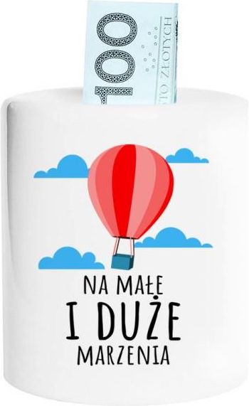 Skarbonka ceramiczna z nadrukiem. Idealna dla Ciebie, a także na prezent dla bliskiej Ci osoby. Wymiary skarbonki: średnica 82 mm, wysokość 90 mm.