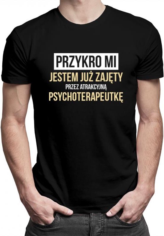 Koszulkowy Przykro Mi - Jestem Już Zajęty Przez Atrakcyjną Psychoterapeutkę Męska Koszulka Z Nadrukiem Cieszyn