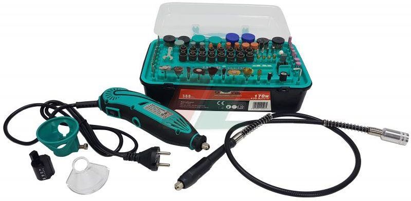 MARPOL Mini szlifierka 170W + Akcesoria, M22270 Charakterystyka produktu: Mini szlifierka łączy w sobie kompaktowe rozmiary i dużą moc. Znajdzie zastosowanie w rękach hobbistów jak i osób bardziej wymagających. Doskonale nadaje się do prac modelarski czy szlifowania elementów silnika. Świetnie sprawdzi się przy polerowaniu czy porting-u cylindrów. Parametry techniczne: -moc maksymalna: 170 W -regulacja obrotów: 8 000-35 000 obr/min - 388 PCS Nr katalogowy: M22270