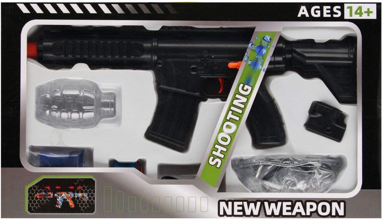 Mega Creative Karabin Na Pociski Wodne 569488 Karabin na pocisk wodny to idealna zabawka na gorące, letnie dni Wyposażony w specjalny mechanizm wyrzucający strumień wody przez pociski wodne, gwarantuje świetną zabawę w ogrodzie, na plaży czy podczas wakacyjnych przygódd. Lekka i poręczna konstrukcja wygodny uchwyt i kompaktowy rozmiar sprawiają, że karabin świetnie leży w dłoni. Bezpieczna zabawa wykonany z trwałych, nietoksycznych materiałó w bez ostrych krawędzi. Długi zasięg potrafi wystrzelić wodne pociski na imponującą odległość, co dodaje rywalizacji jeszcze więcej emocji. Łatwe napełnianie szybki system uzupełniania wody pozwala wrócić do zabawy w kilka chwil. Zawartość zestawu karabin plus akcesoria tj. tłumik do karabinu, 10x pociski wodne, kabel USB 7,4V. Karabin posiada widok na podczerwień. wymiary produktu dł. wys. x gł. cm --karabin 64x14x4, wymiar opakowania dł. x wys. x gł. cm 52x27x7,, waga produktu bez opakowania kg 0,69 kg, waga produktu w opakowaniu kg 0,90 kg, Wymaga zasilania bateriami 1x 7,4V -załączone do zestawu. Zabawka przeznaczona dla dzieci w wieku +14 Pakowany w kartonik z okienkiem.