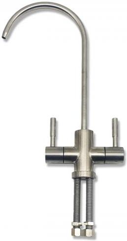 Bateria do filtra wody, kran podwójny dwuobwodowy Podwójna bateria kuchenna do filtra odwróconej osmozy Stylowa i kompaktowa podwójna bateria kuchenna, wykonana z wysokiej jakości stali nierdzewnej, to doskonałe rozwiązanie dla osób ceniących wygodę oraz funkcjonalność. Przeznaczona do pobierania dwóch rodzajów wody filtrowanej, idealnie sprawdzi się w kuchni wyposażonej w filtr odwróconej osmozy. Dzięki dwóm osobnym kurkom, możesz swobodnie korzystać zarówno z wody zmineralizowanej, jak i oczyszczonej bez minerałów, co czyni tę baterię doskonałym wyborem. Najważniejsze zalety baterii podwójnej do filtra Dwa niezależne kurki – możliwość pobierania wody filtrowanej z minerałami oraz bez minerałów Wszechstronność zastosowania – możliwość podłączenia np. do wody filtrowanej oraz wody z wkładem REDOX Wysoka jakość wykonania – trwała, odporna na korozję stal nierdzewna zapewnia długą żywotność Nowoczesny design – eleganckie, minimalistyczne wykończenie pasujące do każdej kuchni Łatwa instalacja – przystosowana do standardowych wężyków o średnicy 1/4", co umożliwia szybkie i bezproblemowe podłączenie Dane techniczne Materiał: stal nierdzewna Rodzaj baterii: podwójna (dwa kurki) Zastosowanie: filtry odwróconej osmozy, systemy mineralizujące, wkłady REDOX Podłączenie: wężyk 1/4" Kolor wykończenia: stal nierdzewna