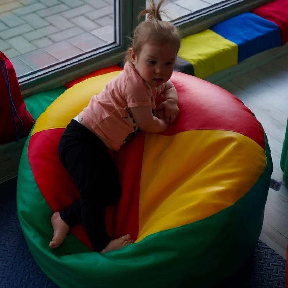 OSTATNIE SZTUKI! Pufa Sensoryczna - SKAJ 80 cm Pufa Sensoryczna - SKAJ 80 cm to narzędzie przeznaczone do różnego rodzaju terapii, które można wykorzystać także w zabawie. Stworzysz z nim fantastyczną przestrzeń w pokoju dziecięcym, gabinecie terapeuty czy w sali przedszkolnej. Tym bardziej, że pufa umożliwia naturalną zmianę pozycji ciała w trakcie zabawy lub nauki, co jest niezwykle istotne w prawidłowym funkcjonowaniu najmłodszych i umożliwia aktywne siedzenie podczas zajęć. Dzięki pufie dziecko może wyciszyć się i odprężyć. Turlanie się po tym miękkim meblu, przemieszczanie na nim i zapadanie w jego miękkie, dopasowujące się do ciała wnętrze, to bezpieczna przystań dla skołatanych nerwów. Dzięki temu pufa sprawdzi się przede wszystkim u osób z różnymi zaburzeniami, m.in. z zaburzeniami emocji i zachowania, z autyzmem i Zespołem Aspergera. Wykorzystać ją można również u dzieci ze zbyt dużym napięciem mięśniowym. Dziecko może usiąść lub położyć się na pufie, pomocne mogą być tu także masaże i muzyka relaksacyjna. Ponadto pufa rozwija zmysł dotyku oraz świadomość własnego ciała, stymuluje czucie głębokie, rozluźnia mięśnie. Może być wykorzystywana do ćwiczeń z zakresu motoryki dużej oraz koordynacji ruchowej. Przydatna będzie również w rehabilitacji, np. w trakcie ćwiczeń równoważnych i takich, które wspomagają kontrolę tułowia i miednicy. Pufa ma 4 kolory, może więc wspomagać utrwalanie nazw i rozróżnianie kolorów podstawowych. Sprawdzi się także podczas zajęć integracji sensorycznej. Mogą z niej korzystać osoby niepełnosprawne fizycznie i intelektualnie podczas zajęć terapeutycznych. Z pufy mogą korzystać dzieci w wieku szkolnym, przedszkolnym, a także młodsze, gdyż jest całkowicie bezpieczna w użyciu i wykonana z certyfikowanych materiałów. Łatwo poddaje się czyszczeniu, sprawdzi się również w ogrodzie. [ikony-produktu-opisy] Co zawiera? 1 sztuka Główne informacje Materiał: Skóra ekologiczna - skaj. Wypełnienie: Granulat styropianowy Wymiary: 30 (wysokość) x 80 cm (średnica). Kolory: Czerwony i żółty (jedna strona), żółty i niebieski (druga strona), zielony (boki). Wypełnienie posiada atest Państwowego Zakładu Higieny. Pufa posiada Certyfikat CE. Pufę należy czyścić na mokro. Nie zawiera ftalanów. Pomysły na zabawę Masaże relaksacyjne – wyciszenie, rozluźnienie, odprężenie, uwrażliwienie na dotyk Dziecko leży wygodnie na pufie. Terapeuta wykonuje masaże relaksacyjne na plecach dziecka lub masaże uwrażliwiające na równych częściach ciała, np. rękach i nogach. Pomocne tu mogą być również inne produkty wykorzystywane podczas zajęć SI, np. woreczki sensoryczne. Bajki relaksacyjne – relaksacja, wyciszenie, rozluźnienie, kształtowanie świadomości własnego ciała, rozwój zmysłu dotyku Dziecko leży wygodnie na plecach, ma zamknięte oczy. Terapeuta czyta bajkę relaksacyjną, dotyczącą rozluźnienia poszczególnych części ciała. Opcjonalnie można włączyć w tle muzykę relaksacyjną.