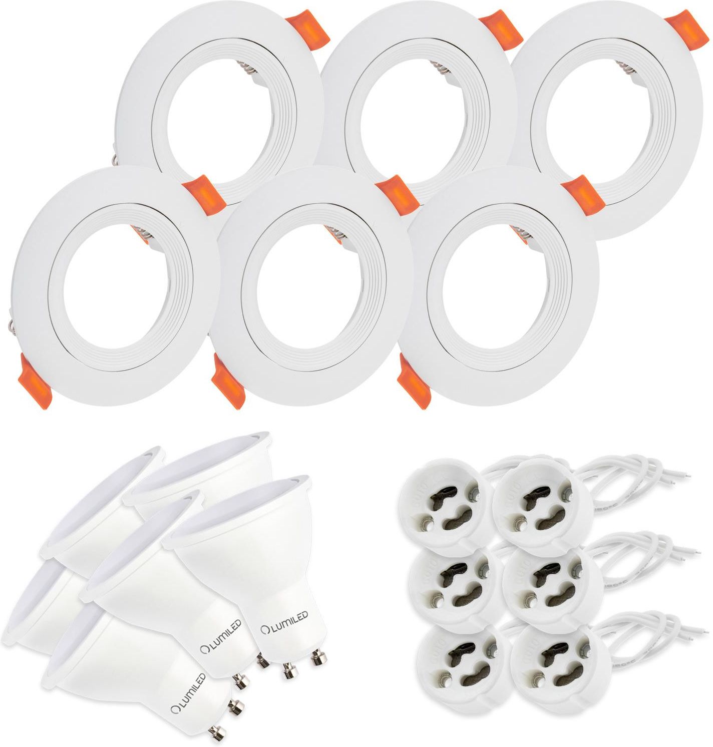 Lumiled 6x Oprawa Halogenowa Podtynkowa VENTUS + 6x Żarówka LED GU10 Zimna 8W + 6x gniazdo Ciężkowice