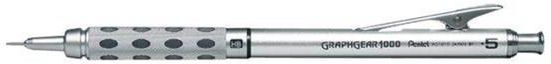 Ołówek automatyczny Graphgear 1000 PENTEL 0,5mm srebrno-czarny PG1015-A Wysokiej jakości ołówek automatyczny z matowym, czarnym korpusem. Posiada indykator dzięki któremu możemy zaznaczyć jakiej twardości jest grafit w ołówku. Gumowe wypustki zwiększające komfort pisania. Nowoczesny mechanizm wysuwania grafitu pozwala na maksymalne jego zużycie. 3 grafity HB oraz gumka wymienna Z2-1N. Dostępny z grafitami 0.5mm. Ołówek ten będzie doskonałym narzędziem dla architektów, inżynierów, projektantów oraz artystów. Cechy: • pakowany w prezentowe etui • 3 grafity w zestawie oraz gumka wymienna Z2-1N • posiada gumowy uchwyt, klips oraz specjalny indykator • metalowa obudowa i mechanizm • grafit o grubości 0,5mm • kolor srebrny • długa końcówka o długości 4mm • całkowita długość ołówka: 147mm