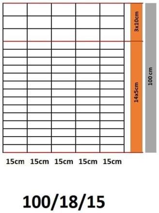 SIATKA LEŚNASIATKA LEŚNA 100cm/18/15, ocynkowana, grubość drutu 1.6 mm,drut napinający 2,0mm, pionowe druty co 15cm, schemat oczek od dołu 14x5cm 3x10cm , pakowana po 30 mb.Dostępne rolki pakowane po 50mb. Sprzedaż tylko całych rolek.ZASTOSOWANIE:Siatkę tego typu można stosować wszędzie tam gdzie potrzebujemy tanich, trwałych, łatwych i szybkich w montażu ogrodzeń, np. w grodzeniu hodowli, działek budowlanych, czy sadów i szkółek.Doskonale nadaje się do samodzielnego montażu ogrodzenia wszelkich upraw leśnych, sadowniczych, jak i zastosowania w gospodarstwie rolnym. Siatka leśna to jednorazowy wydatek, dzięki któremu przez lata mogą Państwo być spokojni o swoje uprawy. Siatka ta znakomicie sprawdza się również jako tymczasowe ogrodzenia placów budowy. Cechuje ją wytrzymałość na warunki atmosferyczne jak i odporność na ataki zwierzyny.Oferowane przez nas siatki zapewniają ochronę przed ingerencja dzikich zwierząt. W zależności od wysokości siatki oraz gęstości oczek, siatki stanowią zabezpieczenie przed zającami, sarnami jeleniami, dzikami itp.W naszej ofercie znajdą Państwo różne wysokości siatek leśnych. o różnych parametrach. Każda siatka leśna oferowana przez naszą firmę spełnia wysokie standardy jakościowe.