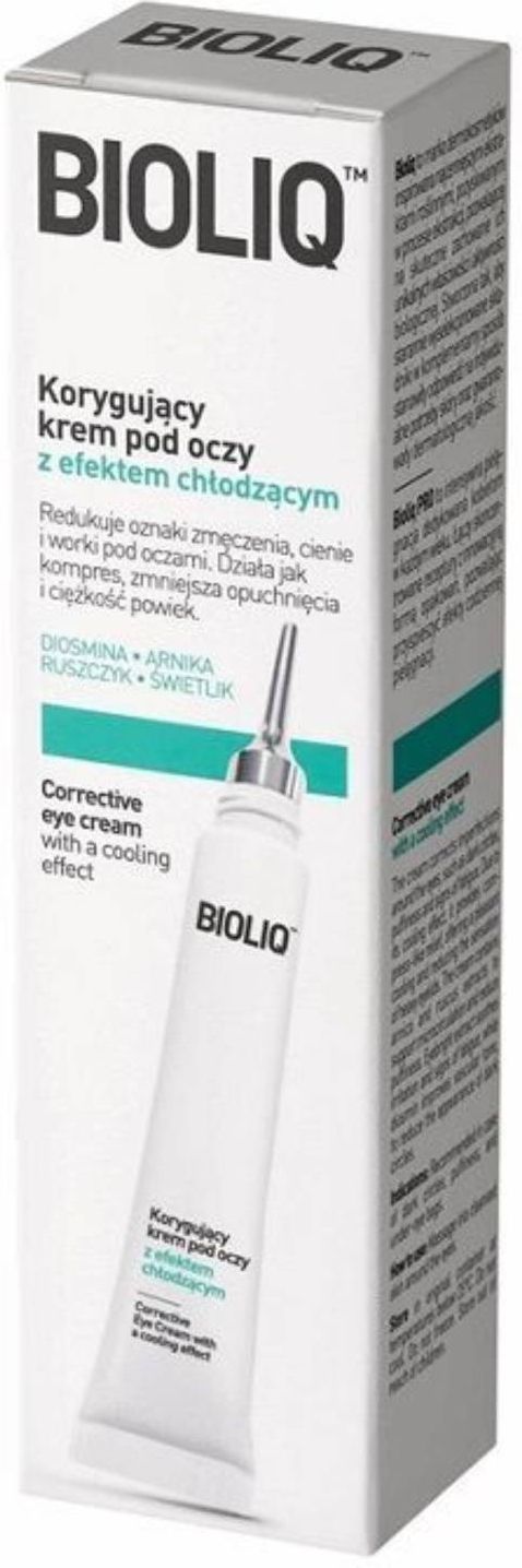 Korygujący krem pod oczy z efektem chłodzącym 10 ml Bioliq to marka dermokosmetyków inspirowana najcenniejszymi ekstraktami roślinnymi, pozyskiwanymi w procesie ekstrakcji, pozwalającej na skuteczne zachowanie ich unikalnych właściwości i aktywności biologicznej. Stworzona tak, aby starannie wyselekcjonowane składniki w komplementarny sposób stanowiły odpowiedź na indywidualne potrzeby skóry oraz gwarantowały dermatologiczną jakość. Bioliq PRO to intensywna pielęgnacja dedykowana kobietom w każdym wieku. Łączy skoncentrowane receptury z innowacyjną formą opakowań, pozwalając przyspieszyć efekty codziennej pielęgnacji. Bioliq PRO Korygujący krem pod oczy z efektem chłodzącym. Specjalistyczna formuła stworzona z myślą o codziennej pielęgnacji delikatnej i wrażliwej skóry wokół oczu, szczególnie narażonej na cienie, worki i oznaki zmęczenia. Preparat koryguje widoczne objawy niewyspania i zmęczenia, nadając świeżości spojrzeniu. Zawarte w kremie ekstrakty z arniki i ruszczyka wspomagają mikrokrążenie, zmniejszając opuchnięcia. Świetlik lekarski łagodzi podrażnienia i objawy zmęczenia, a diosmina poprawia napięcie naczyń krwionośnych, ograniczając widoczność sińców i cieni pod oczami. Korygujący krem pod oczy redukuje wszelkie zmiany w okolicy oka, te po nieprzespanej nocy i te towarzyszące ,,od zawsze”. Pozostawia delikatną skórę pod oczami gładką oraz o zdrowym kolorycie. Chłodzący efekt kremu działa jak kompres – szybko przywraca oczom wypoczęty, promienny wygląd, redukując poranne opuchnięcia i uczucie ciężkości powiek. Daje ukojenie nawet bardzo zmęczonym oczom. Efekty odczuwane bezpośrednio po aplikacji. Krem posiada pozytywną ocenę dermatologiczną i okulistyczną, również dla osób noszących szkła kontaktowe. Sposób użycia Nanieść na oczyszczoną skórę wokół oczu, także na powieki. Delikatnie wmasować. Stosować rano i/lub wieczorem. Unikać bezpośredniego kontaktu z oczami. Składniki Aqua, Isoamyl Laurate, Vitis Vinifera Seed Oil, Glycerin, Diosmine, Coco Caprylate/Caprate, Caprylic/Capric Triglyceride, Propanediol, Aloe Barbadensis Leaf Juice, 1,2-Hexanediol, Sodium Acrylates Copolymer, Arnica Montana Flower Extract, Euphrasia Officinalis Extract, Alteromonas Ferment Extract, Lecithin, Neoruscogenin, Ruscogenin, Tocopherol, Pentylene Glycol, Methyl Diisopropyl Propionamide, Hydroxyacetophenone, Citric Acid, Phenethyl Alcohol, Disodium EDTA, Parfum. Producent AFLOFARM FARMACJA POLSKA SP. Z O.O. Partyzancka 133/151 95-200 Pabianice Polska