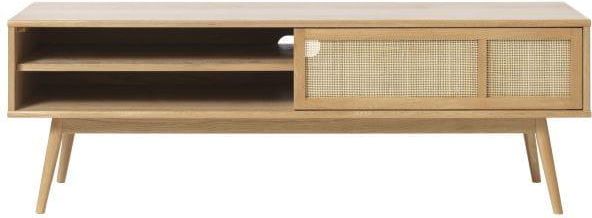Szafka z serii Barrali od More Madam ma elegancki, nowoczesny design z pięknym połączeniem matowej bieli i naturalnego dębu, które uzupełnią każdy wystrój. Wykonana z wysokiej jakości materiałów, ta niska szafka jest trwała. Korpus urządzenia wykonany jest z wytrzymałej płyty MDF, a nogi z litego drewna dębowego dla zwiększenia trwałości. Urządzenie zapewnia również dużo miejsca na wszystkie niezbędne multimedia, utrzymując je w porządku i poza zasięgiem wzroku. Wymiary: 150x50x45 cm Szafka wykonana z drewna dębowego i ratanu