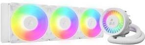 Chłodzenie wodne Arctic Liquid Freezer III Pro 420 ARGB White (ACFRE00189A) Chłodzenie wodne Arctic Liquid Freezer III Pro 420 ARGB White to definicja bezkompromisowej wydajności. Potężny radiator 420 mm o grubości 38 mm, wspierany przez nowe wentylatory P14 Pro, gwarantuje ekstremalnie niskie temperatury CPU. Zintegrowany wentylator VRM i ramka kontaktowa Intel dbają o stabilność całego systemu, czyniąc ten model idealnym wyborem dla entuzjastów i overclockerów. Kompatybilność: Intel LGA1851/1700, AMD AM5/AM4 - Zapewnia wsparcie dla wszystkich najnowszych i popularnych platform konsumenckich. Wymiary radiatora: 458 x 138 x 38 mm - Chłodnica o grubości 38 mm (zamiast standardowych 27 mm) mieści więcej cieczy i ma większą powierzchnię, co poprawia wydajność chłodzenia. Wentylatory: 3x P14 Pro A-RGB (140 mm) - Nowa generacja wentylatorów zoptymalizowanych pod kątem wysokiego ciśnienia statycznego, niezbędnego do efektywnej pracy z grubym radiatorem. Ciśnienie statyczne: 5,2 mmH₂O - Bardzo wysoka wartość gwarantująca skuteczne przepychanie powietrza przez gęste użebrowanie chłodnicy. Prędkość pompy: 800 - 2800 RPM (PWM) - Szeroki i regulowany zakres pracy pozwala na idealne zbalansowanie wydajności i poziomu hałasu. Zintegrowany wentylator VRM: Tak, 400-2500 RPM - Unikalna cecha aktywnie chłodząca sekcję zasilania płyty głównej, co zwiększa stabilność systemu podczas obciążenia. Długość węży: 500 mm - Długie i elastyczne węże w oplocie ułatwiają montaż nawet w bardzo dużych obudowach i zapewniają estetyczny wygląd. Cechy montażowe: Offset Mounting i ramka kontaktowa Intel - Innowacyjne rozwiązania poprawiające docisk i kontakt z najgorętszym punktem procesora, co maksymalizuje transfer ciepła. Dołączona pasta: ARCTIC MX-6 - W zestawie znajduje się wysokowydajna pasta termoprzewodząca, eliminująca potrzebę jej osobnego zakupu. Opis produktu Zintegrowany wentylator VRM Wentylator sterowany sygnałem PWM obniża temperaturę regulatora napięcia, zapewniając stabilną wydajność. Jest to szczególnie ważne podczas intensywnego obciążenia i overclockingu, gdzie sekcja zasilania jest mocno obciążona. Dzięki temu cały system działa niezawodnie, a Ty możesz cieszyć się płynną pracą bez obaw o przegrzewanie się kluczowych komponentów płyty głównej. Montaż z przesunięciem dla Intel i AMD Przesuwa podstawę chłodzenia na najgorętszy punkt procesora (hotspot), co zapewnia wydajniejsze odprowadzanie ciepła. Taka konstrukcja uwzględnia budowę nowoczesnych procesorów, w których jądra nie zawsze znajdują się centralnie pod rozpraszaczem ciepła. W rezultacie chłodzenie jest bardziej efektywne, co przekłada się na niższe temperatury i wyższą wydajność procesora pod obciążeniem. Ramka kontaktowa Intel Zoptymalizowany rozkład nacisku dla dłuższej żywotności procesora i lepszego odprowadzania ciepła. Specjalna ramka zapobiega wyginaniu się procesora (IHS), co jest częstym problemem w standardowych systemach montażowych. Dzięki temu powierzchnia styku z podstawą chłodzenia jest idealnie równa, co maksymalizuje transfer ciepła i pozwala w pełni wykorzystać potencjał pasty termoprzewodzącej. Nowe wentylatory P14 Pro P14 Pro pokazuje swój pełny potencjał: jest cichszy i mocniejszy przy niskich obrotach, z większymi rezerwami wydajności pod obciążeniem - dla maksymalnego chłodzenia bez kompromisów. Ich zoptymalizowany kształt łopatek oraz wysokie ciśnienie statyczne sprawiają, że idealnie nadają się do pracy z gęstymi radiatorami. Użytkownik zyskuje więc kulturę pracy na najwyższym poziomie w spoczynku oraz bezkompromisową wydajność, gdy jest ona najbardziej potrzebna. Radiator klasy premium Chłodnica o grubości 38 mm nie tylko poprawia odprowadzanie ciepła, ale także mieści więcej cieczy niż konwencjonalne radiatory 27 mm. Redukuje to akumulację ciepła i zapewnia efektywniejsze zarządzanie nagłymi skokami temperatury. Większa powierzchnia finów oraz większa objętość płynu chłodzącego działają jak bufor termiczny, stabilizując temperaturę podczas nagłych zmian obciążenia. To rozwiązanie pozwala na dłuższe utrzymanie niskich obrotów wentylatorów, co przekłada się na cichszą pracę całego zestawu. Węże klasy premium Wzmocnione węże z EPDM w plecionym oplocie dla zwiększonej wytrzymałości. Materiał EPDM jest wysoce odporny na starzenie i minimalizuje parowanie cieczy, co gwarantuje długotrwałą i bezobsługową pracę układu. Elegancki oplot nie tylko chroni węże przed uszkodzeniami mechanicznymi, ale również nadaje całemu zestawowi profesjonalny i estetyczny wygląd. Łatwa instalacja Fabrycznie zainstalowane i podłączone wentylatory, prosty montaż oraz animowana instrukcja online. Dzięki temu rozwiązaniu oszczędzasz czas, a zarządzanie przewodami staje się znacznie prostsze i bardziej estetyczne. Proces montażu jest intuicyjny i przyjazny nawet dla osób, które po raz pierwszy składają chłodzenie wodne. Pasta termoprzewodząca MX-6 w zestawie Wystarczy nałożyć pastę na wzór krzyża - podstawa bloko-pompki sama równomiernie ją rozprowadzi. Dołączona pasta MX-6 to produkt o wysokiej wydajności, który nie przewodzi prądu i gwarantuje doskonałe przewodnictwo cieplne przez wiele lat. Dzięki temu masz pewność, że już od pierwszego uruchomienia uzyskujesz maksymalną wydajność chłodzenia, bez potrzeby kupowania dodatkowych akcesoriów. Dwie opcje sterowania Dzięki dołączonemu rozdzielaczowi (splitter), pompa, wentylator VRM oraz wentylatory na chłodnicy mogą być sterowane osobno lub zsynchronizowane za pomocą jednego sygnału PWM przy użyciu kabla typu all-in-one. Daje to użytkownikowi pełną elastyczność w dopasowaniu charakterystyki pracy chłodzenia do własnych potrzeb - od maksymalnej ciszy po najwyższą wydajność. Możliwość osobnej regulacji pozwala na 