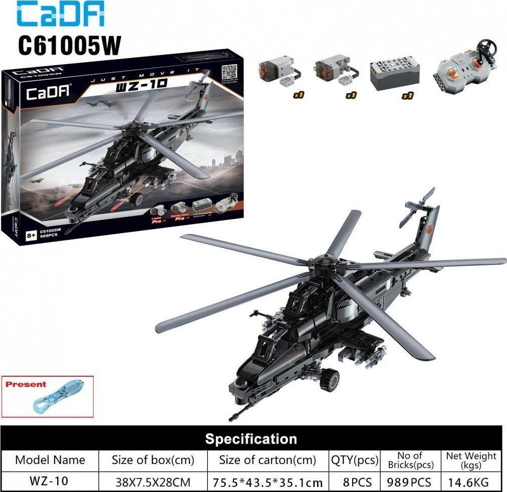 Klocki konstrukcyjne CaDA Zdalnie sterowany Helikopter wojskowy Śmigłowiec szturmowy WZ-10 RC 989 elementów C61005W Produkt przygotowany został przez markę CaDA. Znana jest z wysokiej jakości klocków konstrukcyjnych, dzięki którym można samodzielnie tworzyć zdalnie sterowane zestawy lub ozdobne …