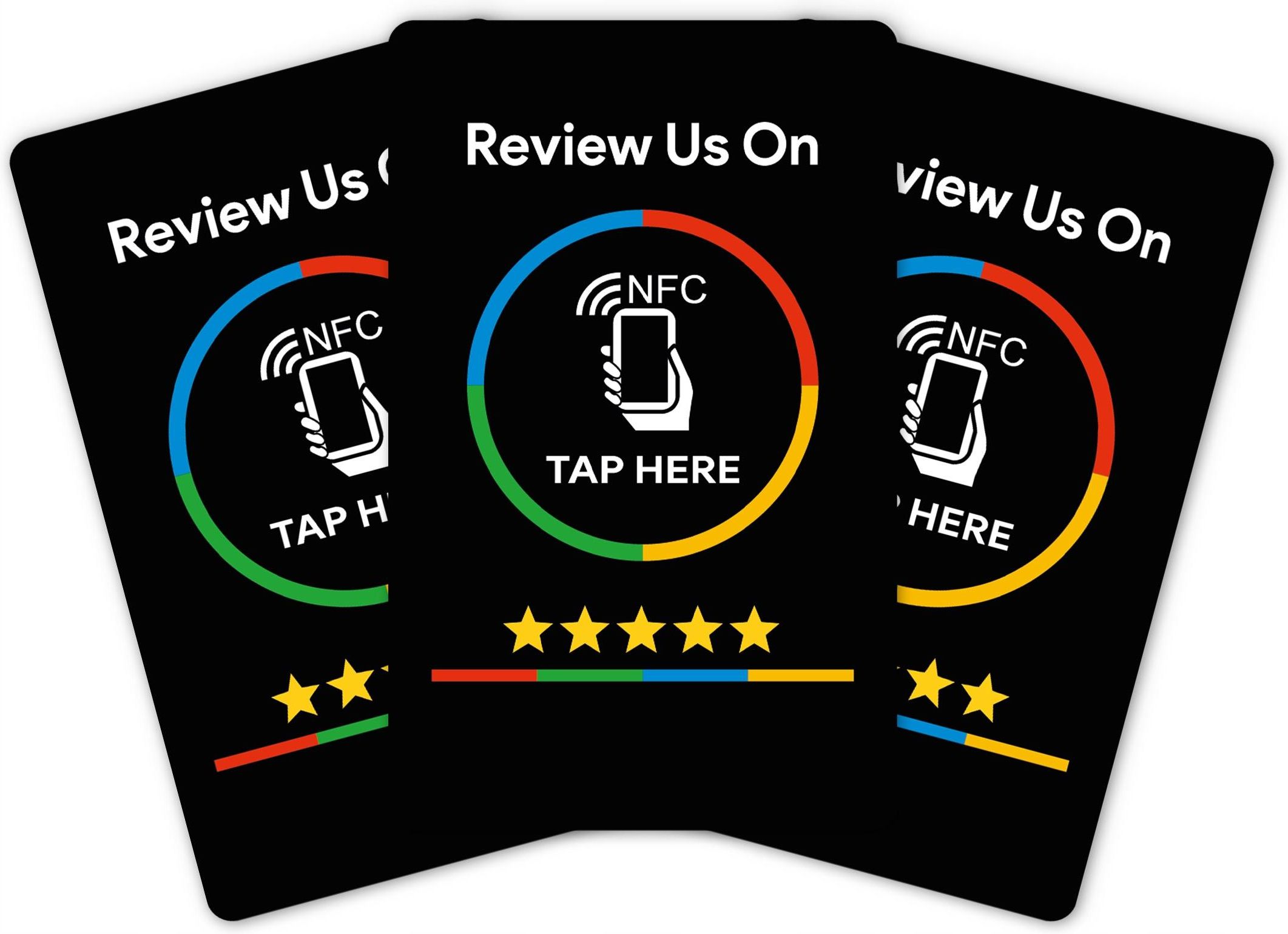 Czarne karty NFC z nadrukiem – Review Us On – 3 szt. do opinii Google Czaplinek