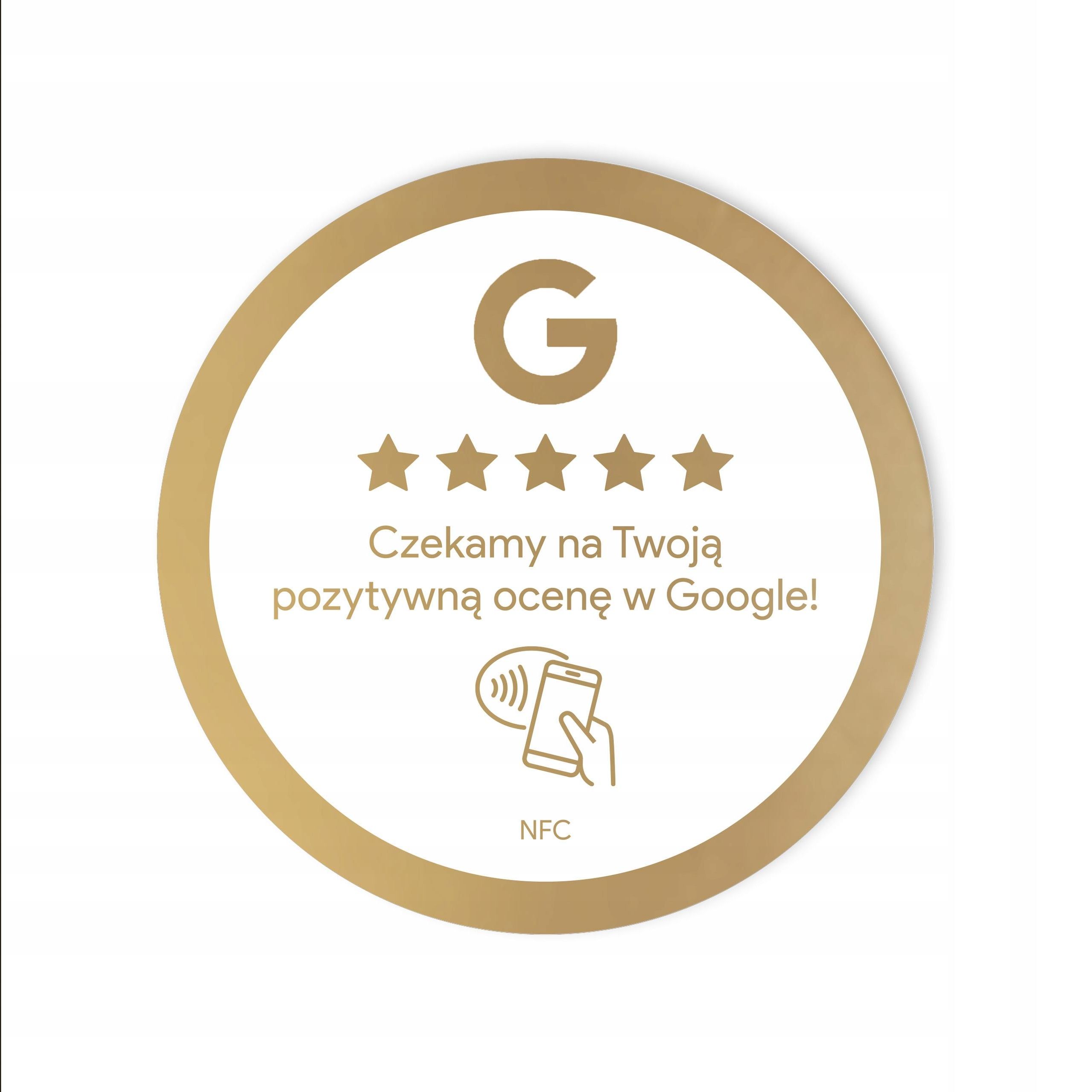 Naklejki NFC Google Opinie Ø5,5 cm – 10 szt. biało-złote, zaprogramowane Czaplinek