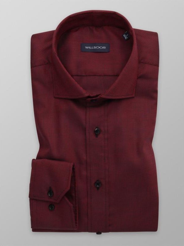 Bordowa taliowana koszula w drobny splot z włoskim kołnierzykiem, 100% bawełna