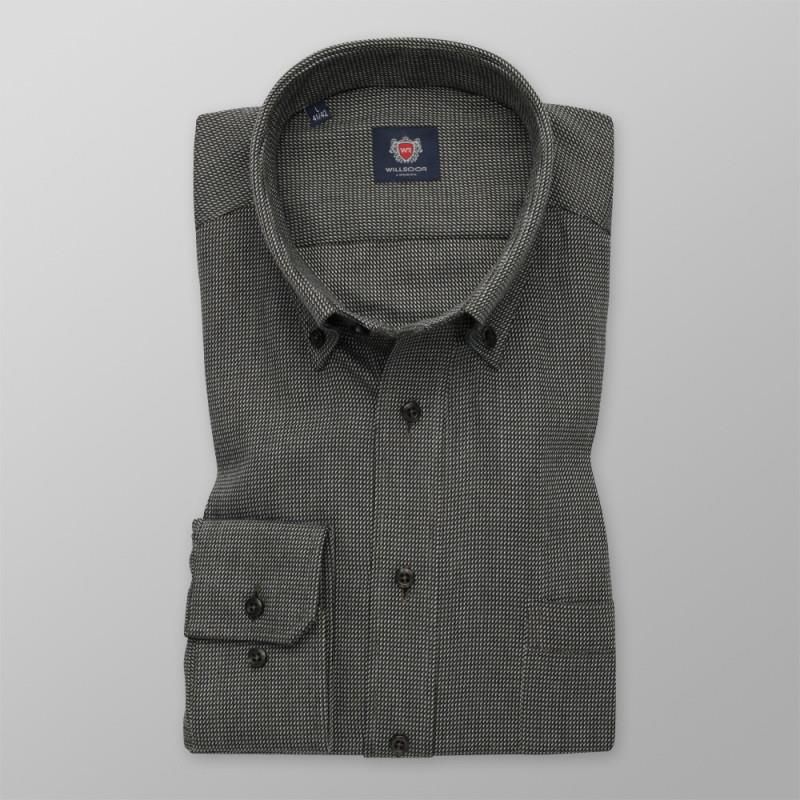Czarna taliowana koszula w drobny szaro-zielony wzór z podpinanym kołnierzykiem