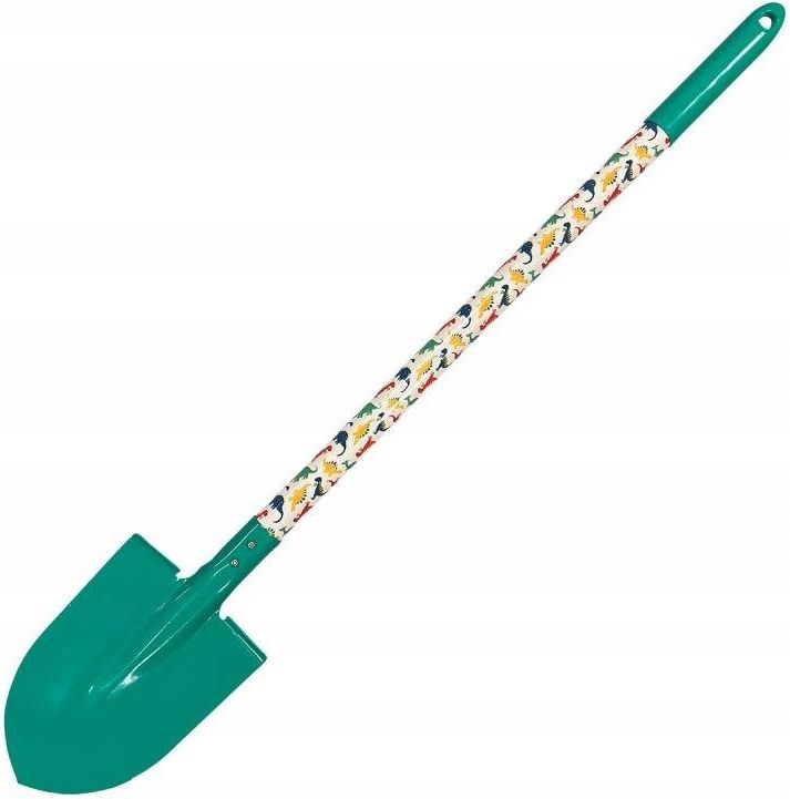 Greenmill Kids Szpadelek metalowy 0147B Szpadelek dla dzieci do prac ogrodowych. Materiał głowicy: stal malowana proszkowo. Materiał trzonka: drewno pokryte ochronną warstwo tworzywa (PVC). Wzór kolorystyczny: zielony (wielokolorowe dinozaury). Długość 73cm, szerokość około 12cm. Zakończenie …