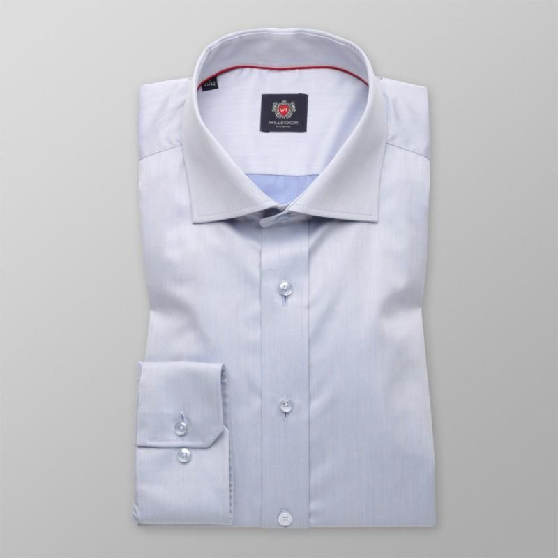 Jasnobłękitna taliowana koszula z włoskim kołnierzykiem i mankietami na guziki, splot two-ply