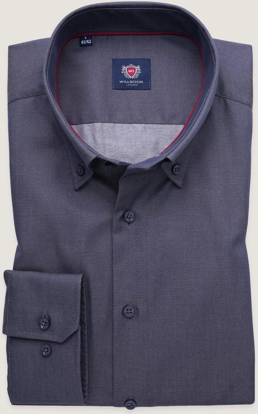 Grafitowa, taliowana koszula o gładkiej fakturze z podpinanym kołnierzykiem i mankietami na guziki, tkanina z dodatkiem tencelu